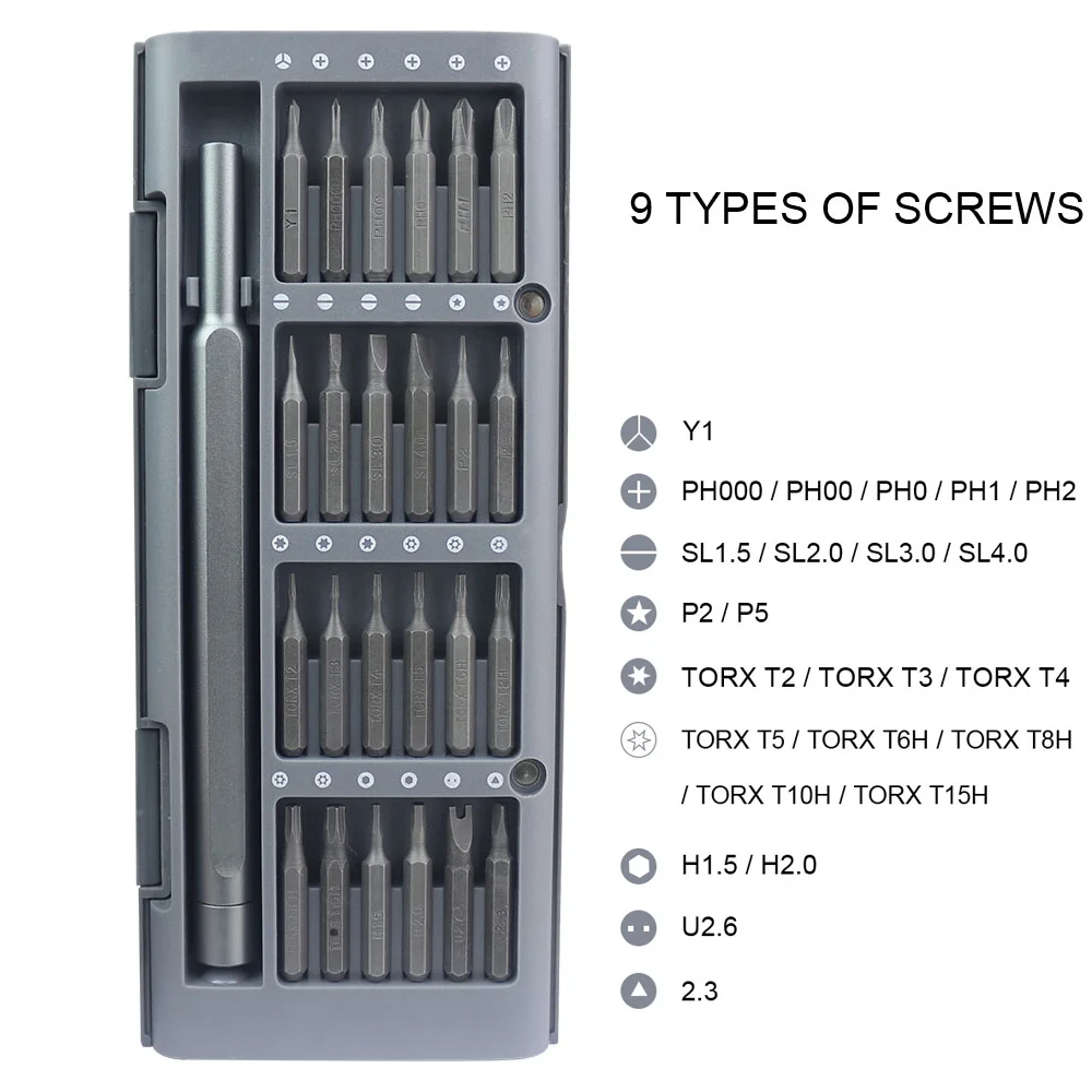 Набор отверток 25-в-1, такой же, как корпус из алюминиевого сплава для ремонта мобильных телефонов, компьютеров, планшетов, инструментов сделай сам