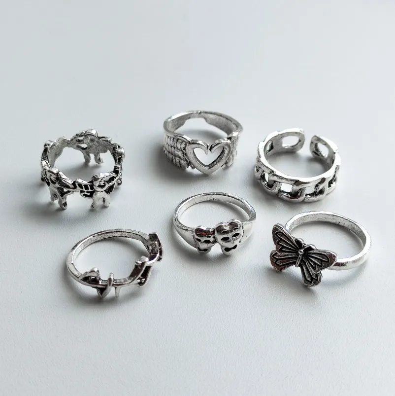 Кольцо женское в готическом стиле, с бабочкой, ангелом, 5 шт.компл.