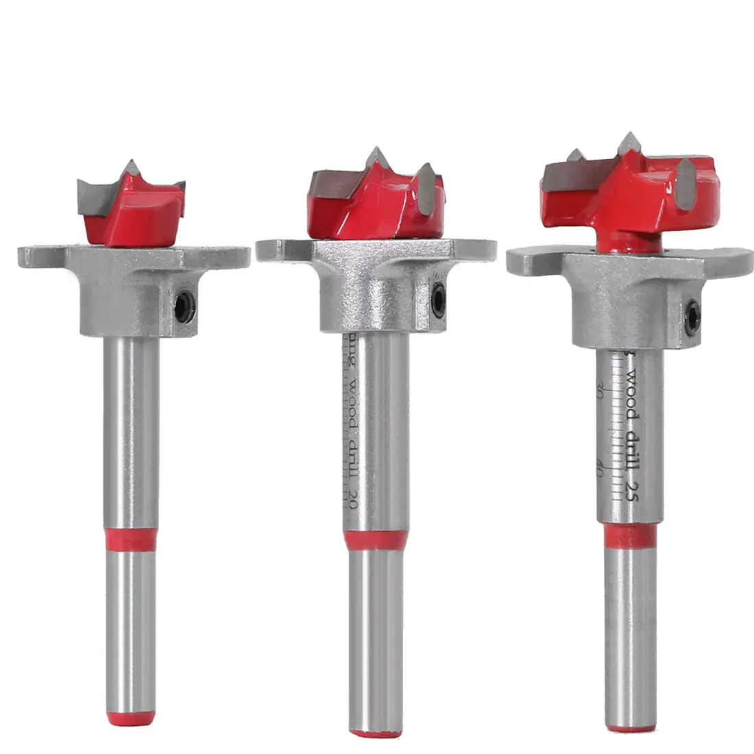 Параметры: Материал: режущая головка из сплава YG8, режущий корпус 45 # углеродистая сталь, поверхностный спрей Диаметр: 15 мм/20 мм/25 мм/30 мм/35 м Пожалуйста, ознакомьтесь с таблицей размеров Назначение: используется для деревянного отверстия, компьютерного стола, стерео и т. д. его можно регулировать в соответствии с глубиной