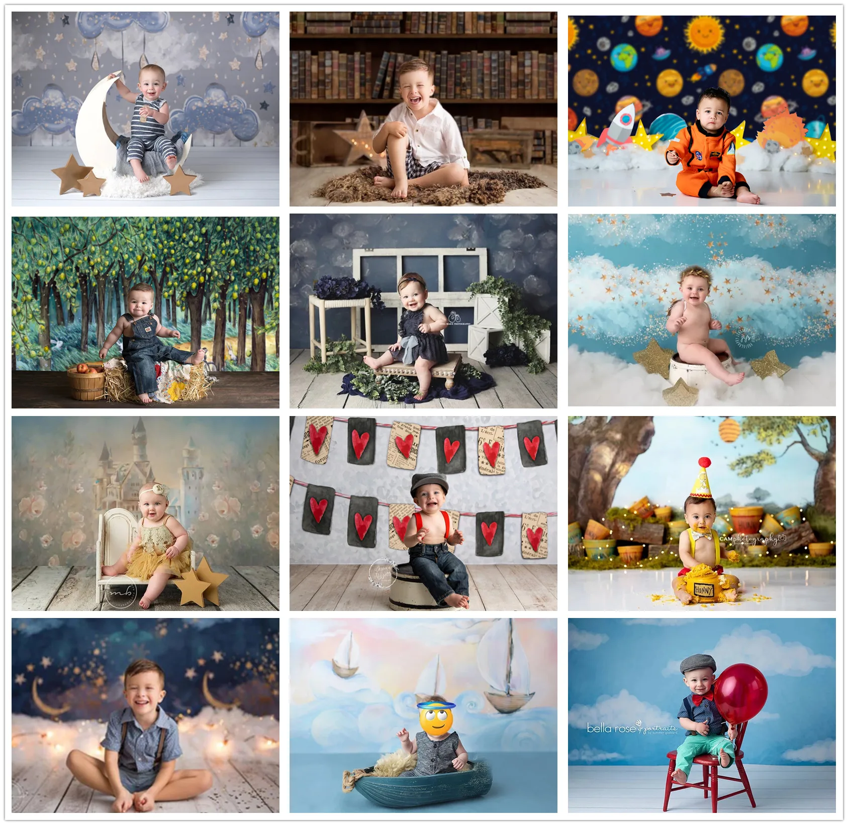 Фон для фотосъемки на день рождения акварельный рисунок для мальчиков и новорожденных Детский фон для фотосъемки с изображением торта для будущей мамы студийный реквизит