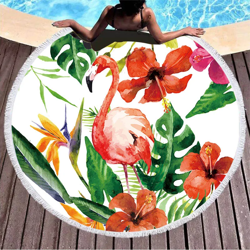 Пляжное полотенце с фламинго, парео, пляжное полотенце с бахромой, круглое пляжное полотенце, Пляжная накидка, полотенце из микрофибры, Большое пляжное полотенце, спа