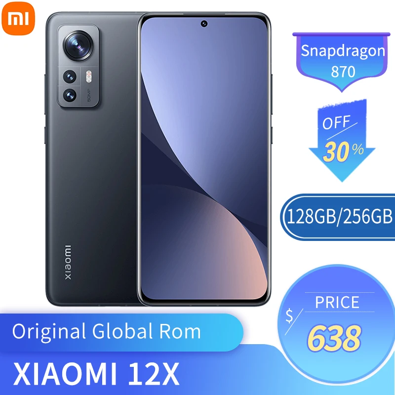 Оригинальный смартфон Mi Xiaomi 12X с глобальной прошивкой, 8 ГБ + 256 ГБ, смартфон с восьмиядерным процессором Snapdragon 870, 50 миллионов пикселей, 120 Гц, экран обновления