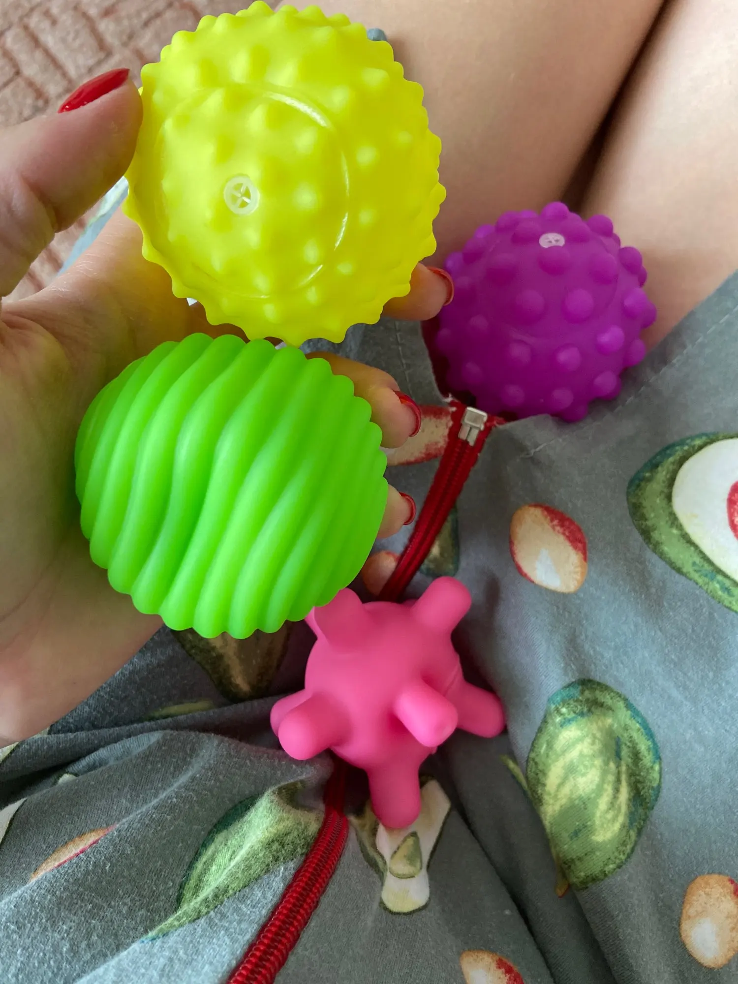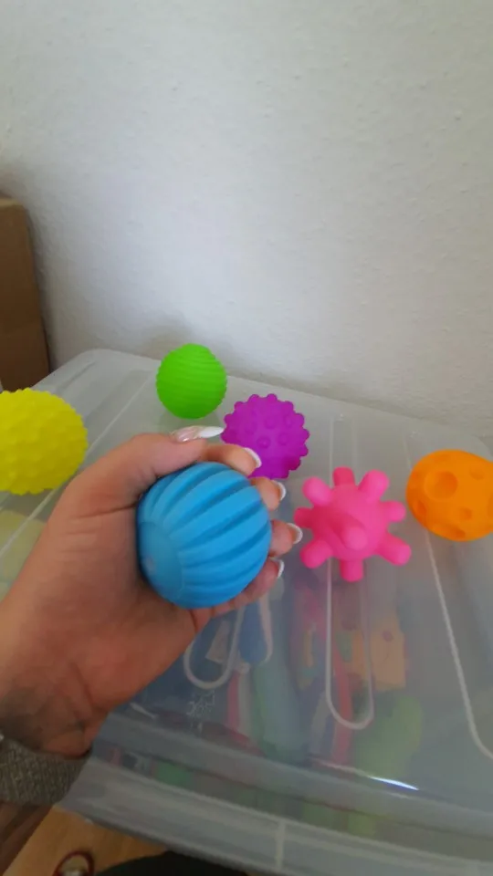 мячики большие для детской руки...двухлетнему ребёнку неудобно держать в руке...ну а в целом довольны