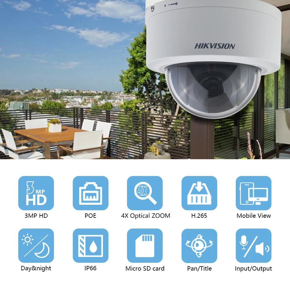 Hikvision PTZ IP-камера DS-2DE3304W-DE 3MP POE Mini Dome 4X Zoom 2-стороннее Аудио CCTV наружное видеонаблюдение Kamera Securite