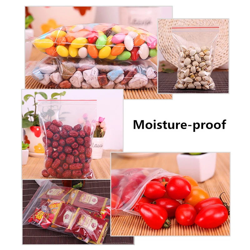 100 шт.упак. повторно используемые пластиковые пакеты с застежкой-молнией, прозрачный полимерный пакет с застежкой-молнией для хранения пищевых продуктов, повторно закрывающийся Вакуумный пакет для сохранения свежести
