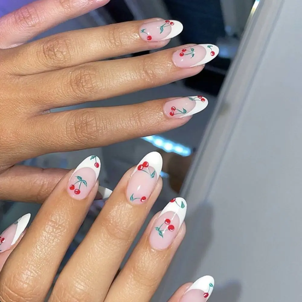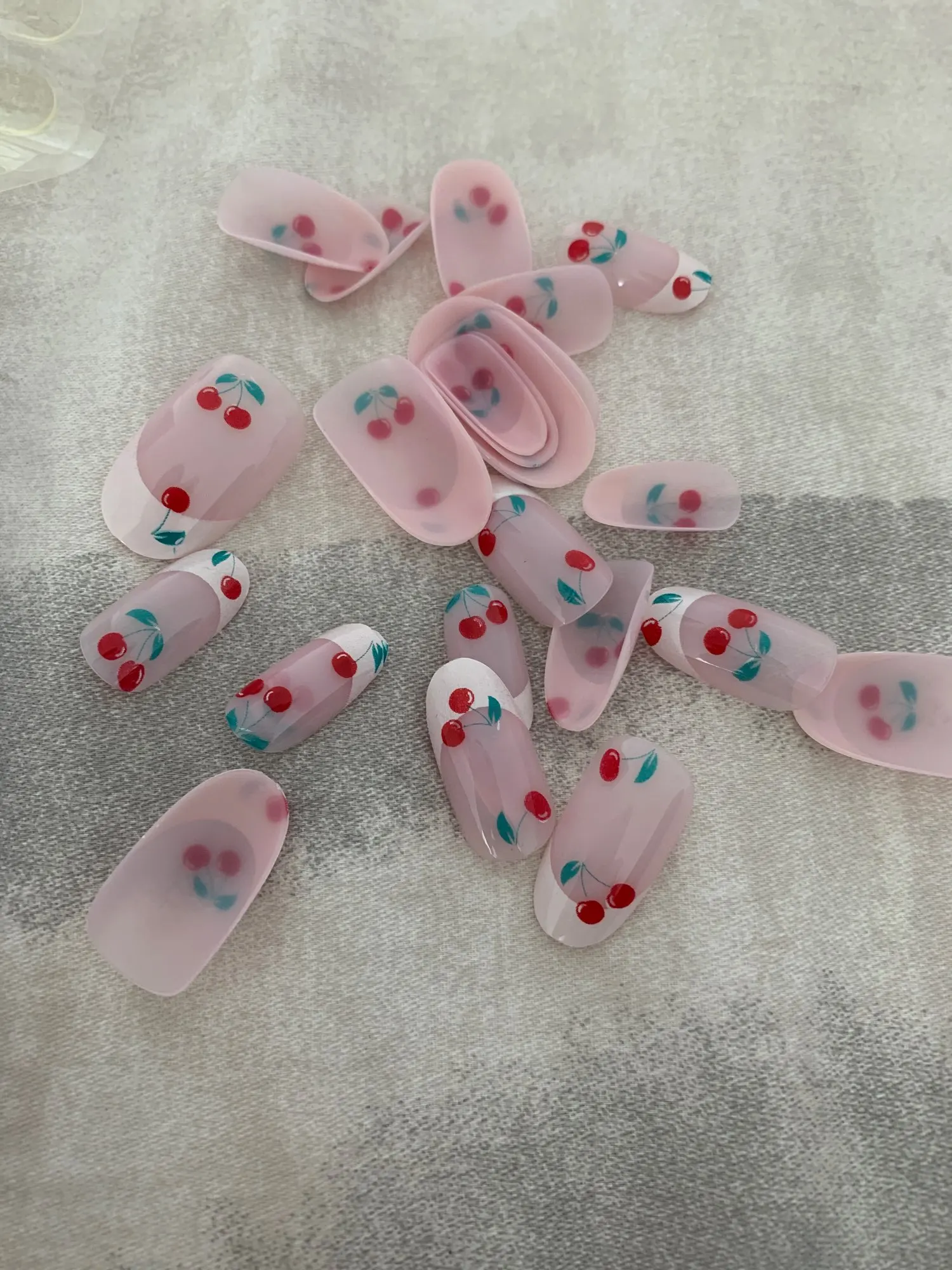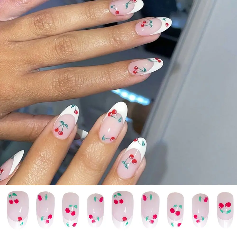 Съемные накладные ногти в виде вишни, французского миндаля, 24 шт.к...
