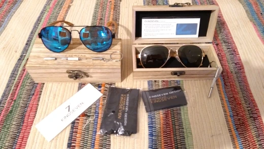 Заказ оформил 26.07.2021, доставили службой 5post в Самарскую область 06.08.2021. Доставка отслеживалась. Упаковка - пакет. Комплектация отличная: очки, мягкий мешочек для хранения, салфетка для протирки, инструмент для подтяжки винтов - в виде брелка с отвинчивающимися колпачками (с одной стороны - крестовая отвертка, с другой стороны - плоская отвертка, в торце одного колпачка - углубление под гайку), листок-тестер для проверки поляризации и футляр из тонкого слегка обожженного дерева с бархатистыми вставками внутри. Футляр красивый, но при желании можно покрыть лаком. Очки отличные (я выбрал silver), легкие, подойдут и мужчине, и женщине, но лучше выглядят на узком или среднем лице. Линзы UV400, поляризованные, качественные и чистые, изображение не искажают. Отличный вариант для подарка. Купил за 368,87 ₽ по акции. Покупкой очень доволен, товар и продавца рекомендую!