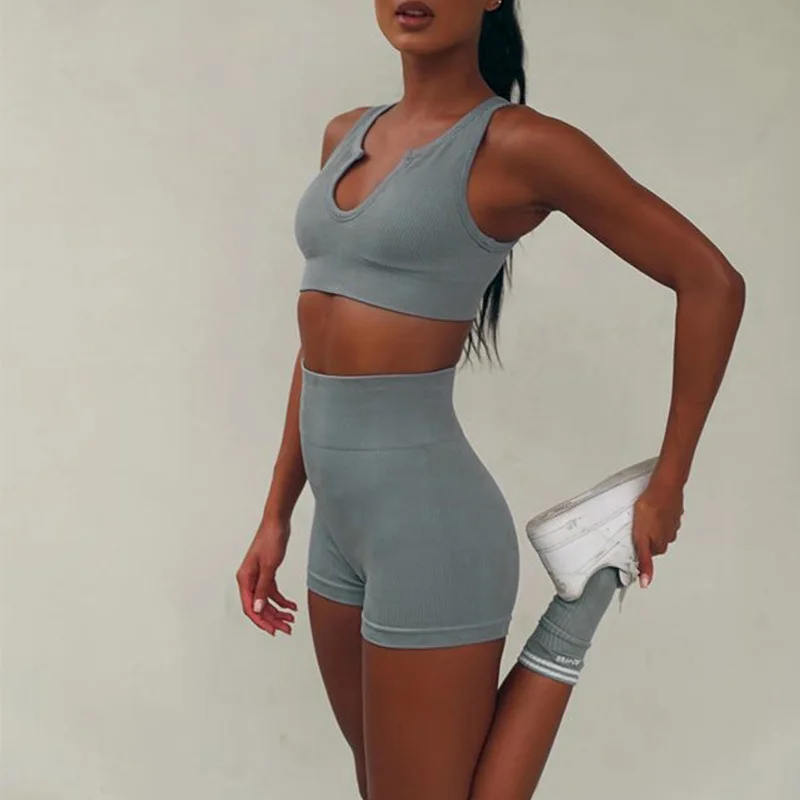 Комплект Спортивный Женский, бесшовный, с бюстгальтером и шортами, ...