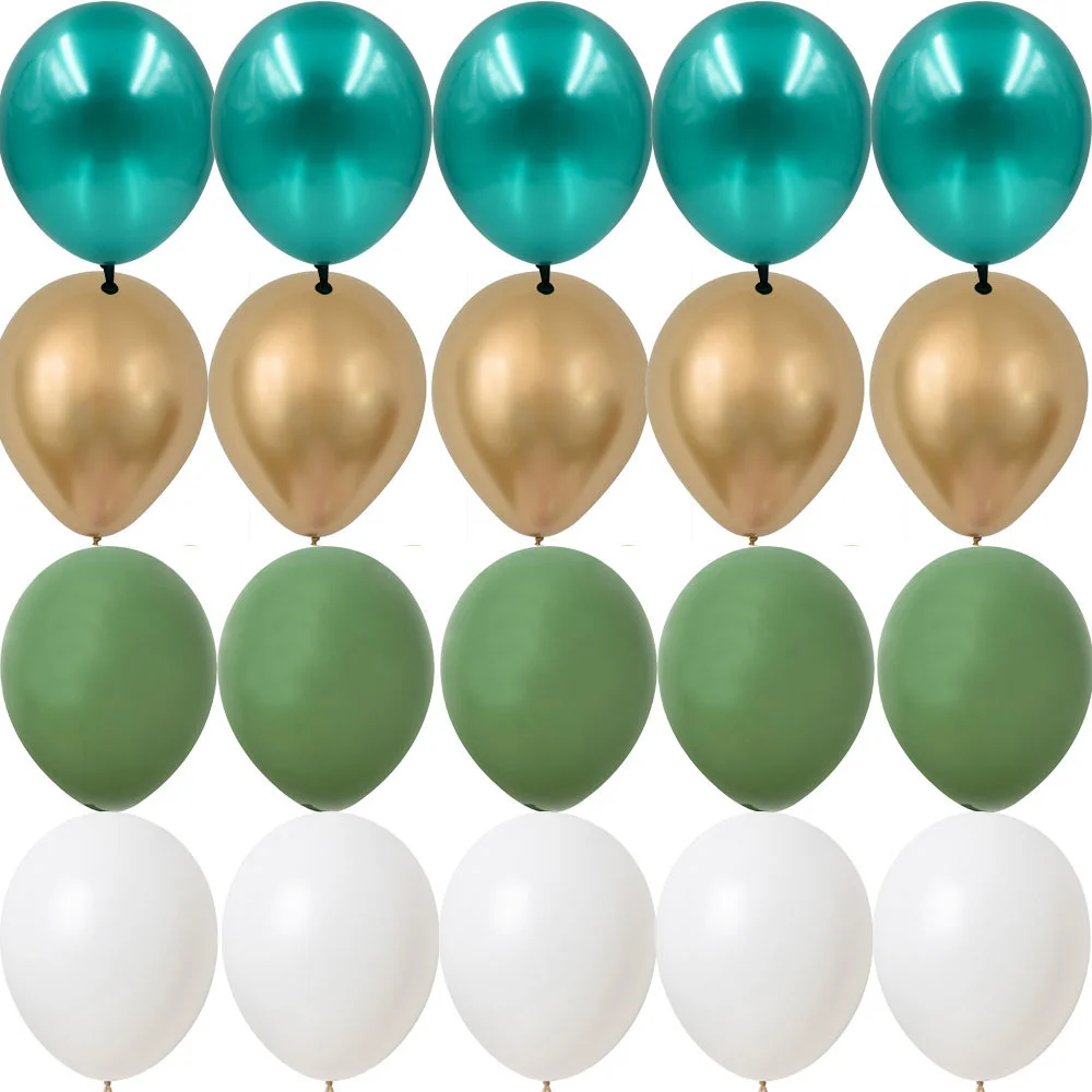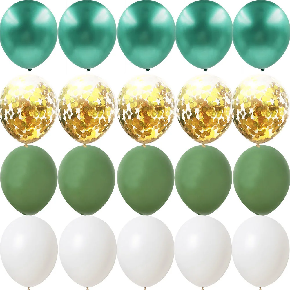 Набор однотонных воздушных шаров 20 шт., зеленые, белые, золотые шары с конфетти на день рождения, свадьбу, вечевечерние в джунглях, украшение «сделай сам», товары для дома