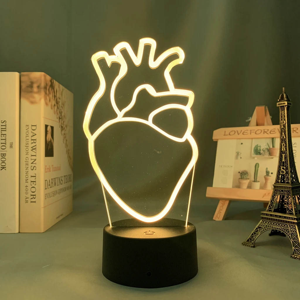 Акриловый светодиодный ночник сердце PNL для спальни украшение меняющий цвет носветильник льник для фанатов подарок декор комнаты QLF сердечки 3d лампа