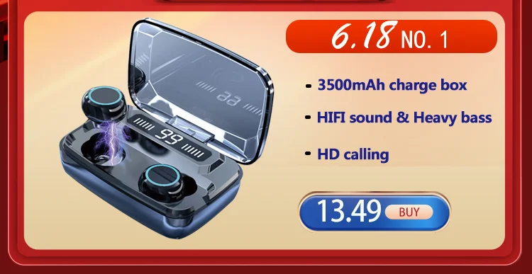 TWS-стереонаушники с поддержкой Bluetooth 3500 мА ч и микрофоном