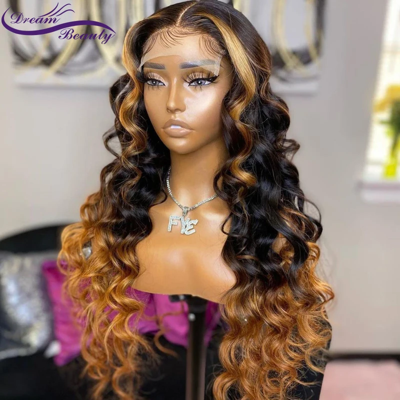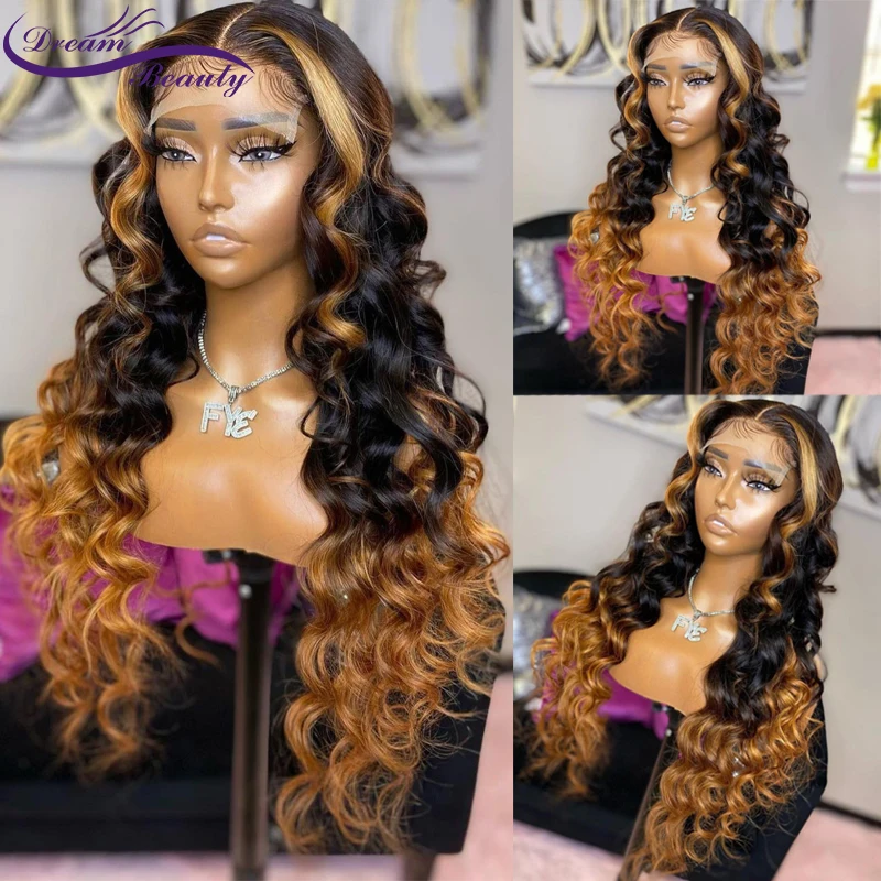 Бразильские парики 220%, коричневые человеческие волосы с эффектом омбре, волнистые парики для женщин, предварительно выщипанные волосы без повреждений 13x4, парик на сетке спереди, Dream Beauty