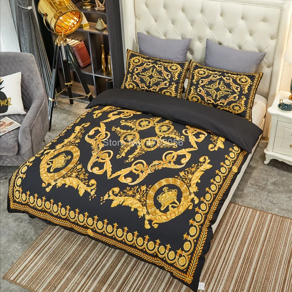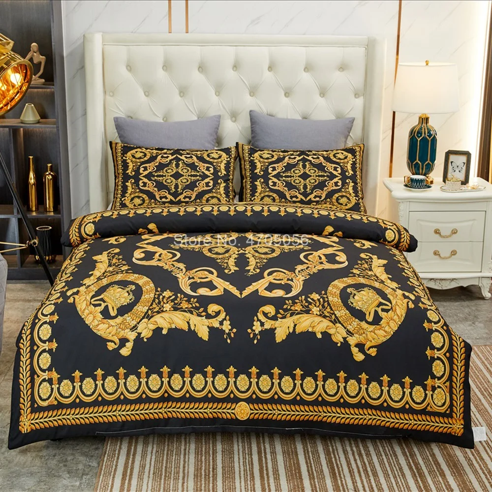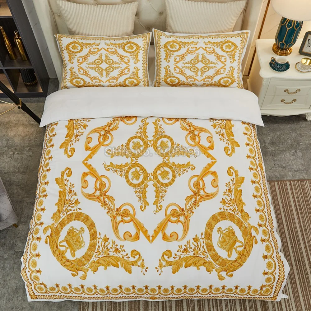 Комплект постельного белья в европейском стиле, роскошное Белое золото в стиле барокко, мягкий чехол уютное стеганое одеяло, наволочка, 3 шт., пододеяльник, постельное белье