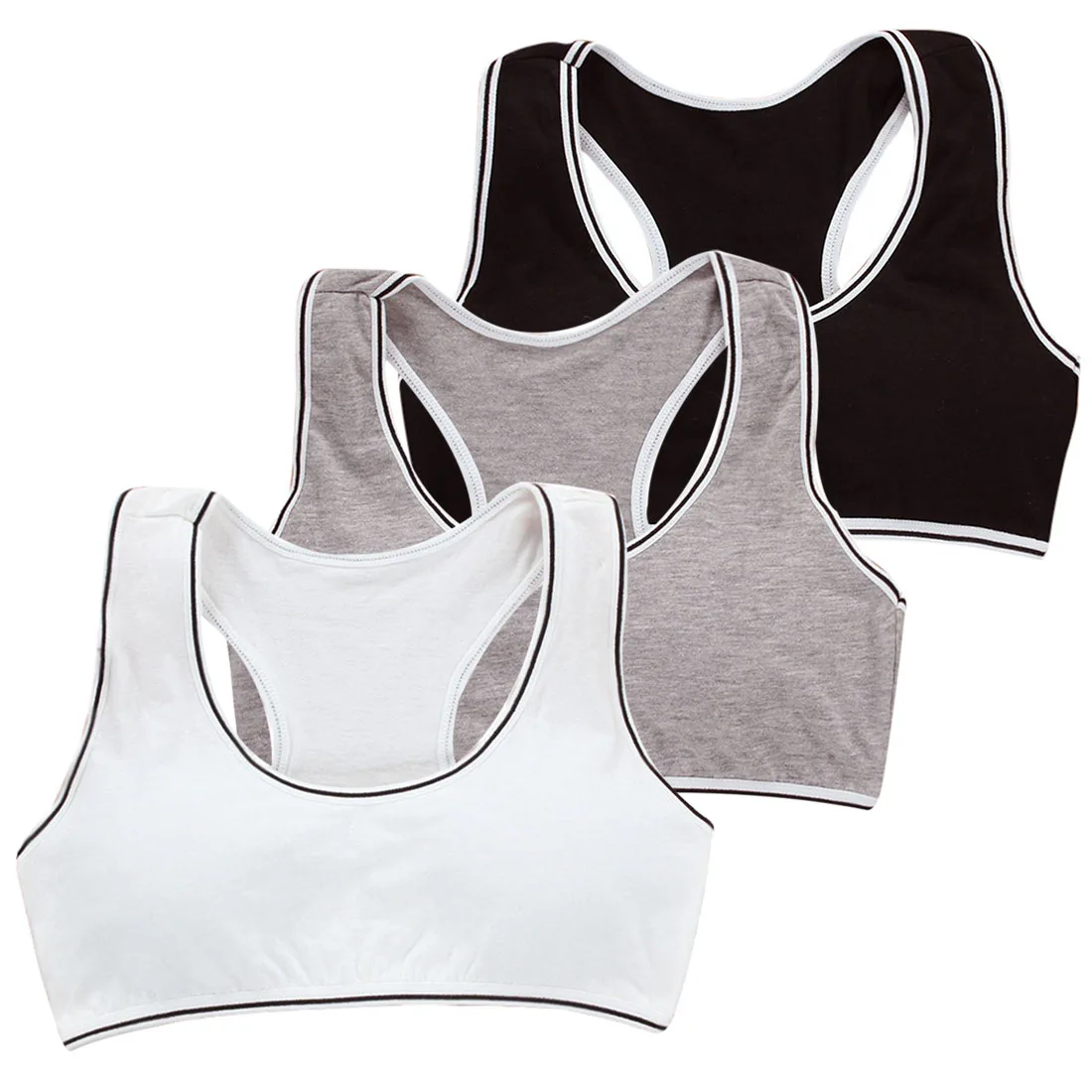 Спортивный бюстгальтер для девочек 3 шт., нижнее белье для подростков, хлопковый тренировочный бюстгальтер, летняя одежда для подростков, бесшовный укороченный топ для подростков