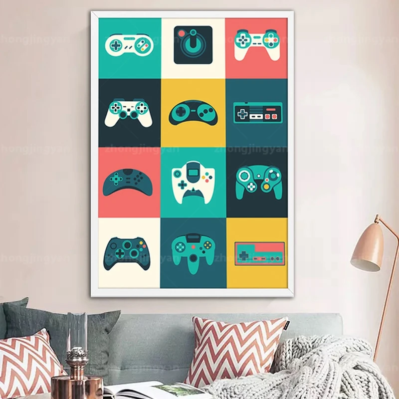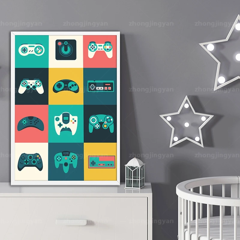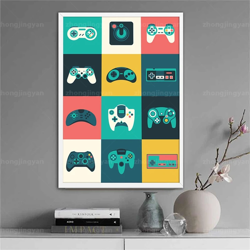 Винтажный видеогеймпад, плакат и печать, Настенная картина, иллюстрация, Картина на холсте для геймеров, для мальчиков, детской комнаты, домашний декор