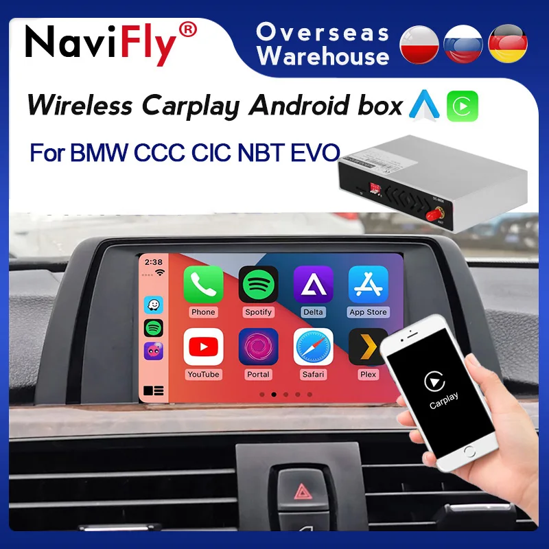 Navifly Android Авто AI Box беспроводной Carplay для BMW F02 F07 F10 F20 F21 F30 F34 E60 E70 E81 E84 E90 X1 X3 X5 X6 CCC CIC NBT EVO