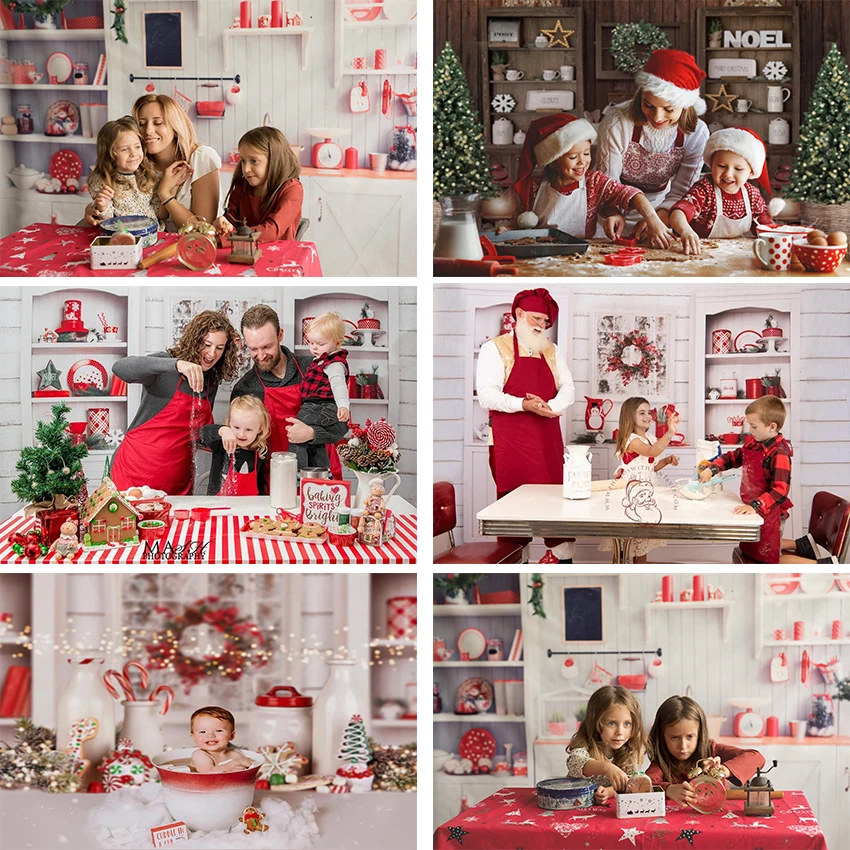 Avezano Рождество кухня фон для фотографии белый деревянный шкаф дети семейный портрет Фотостудия