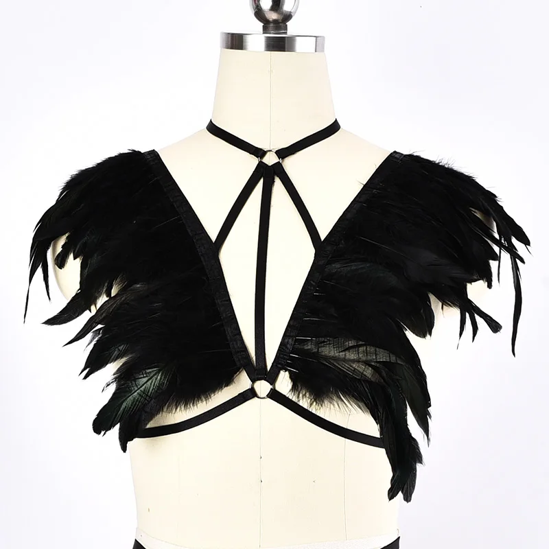 Черное перо, ремни, дневные ползунки, Наплечные крылья, стимпанк, Готическая Рава, фетиш, экзотика, одежда, фестиваль BurningMan