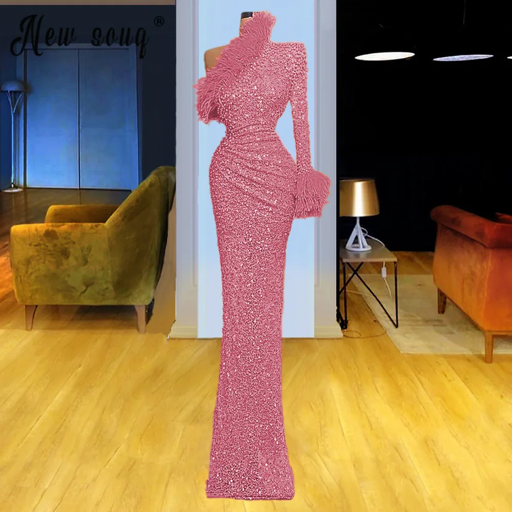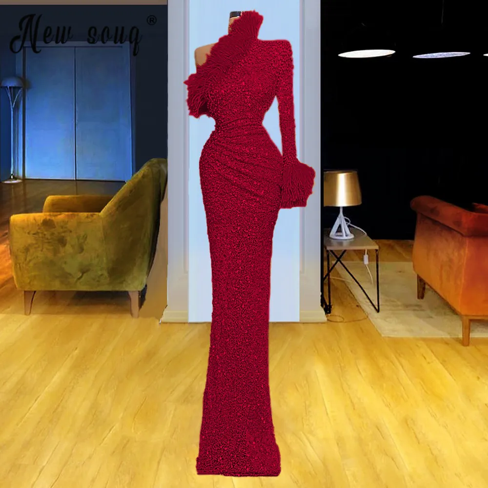 2021 сексуальные оранжевые вечерние платья с Блестками, Бисером, на одно плечо, с длинными рукавами, для торжеств, свадеб, мероприятий, вечерние платья с перьями