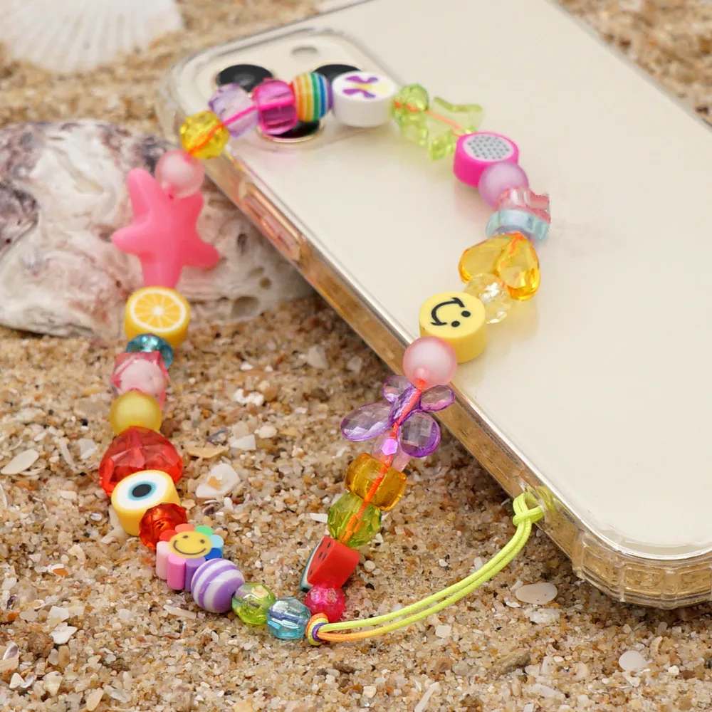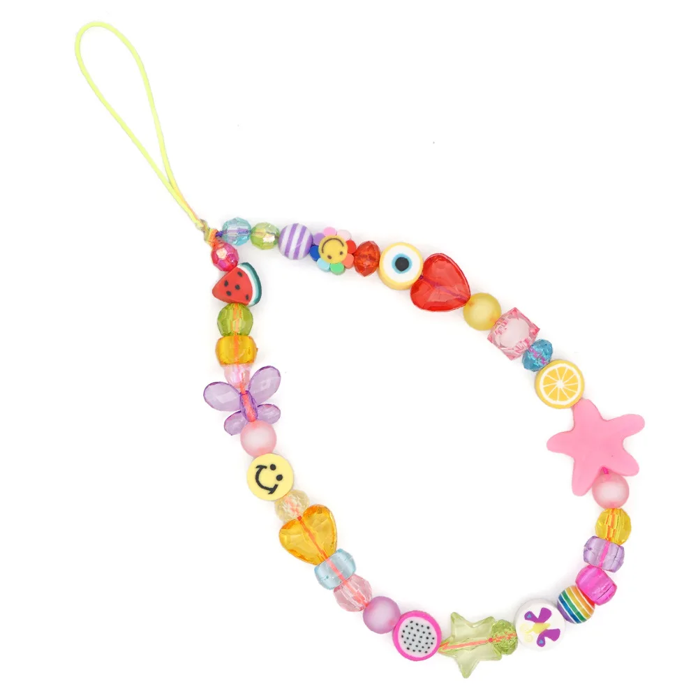 Ручной Работы Красочный прозрачный акриловый звезда фрукты мобильный телефон цепочка ремешок для женщин этнические смолы бисером ювелирные изделия