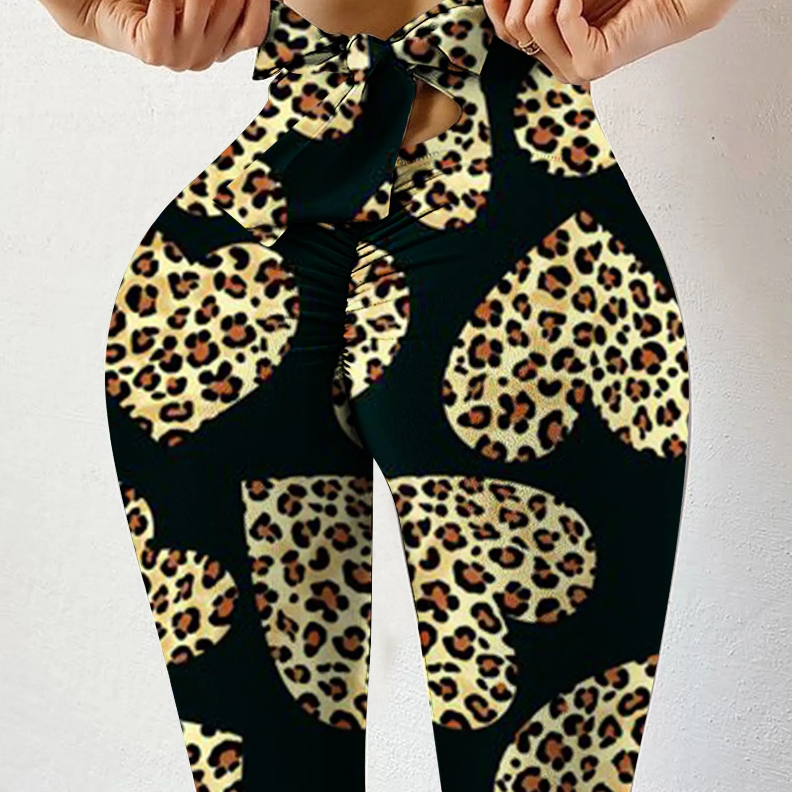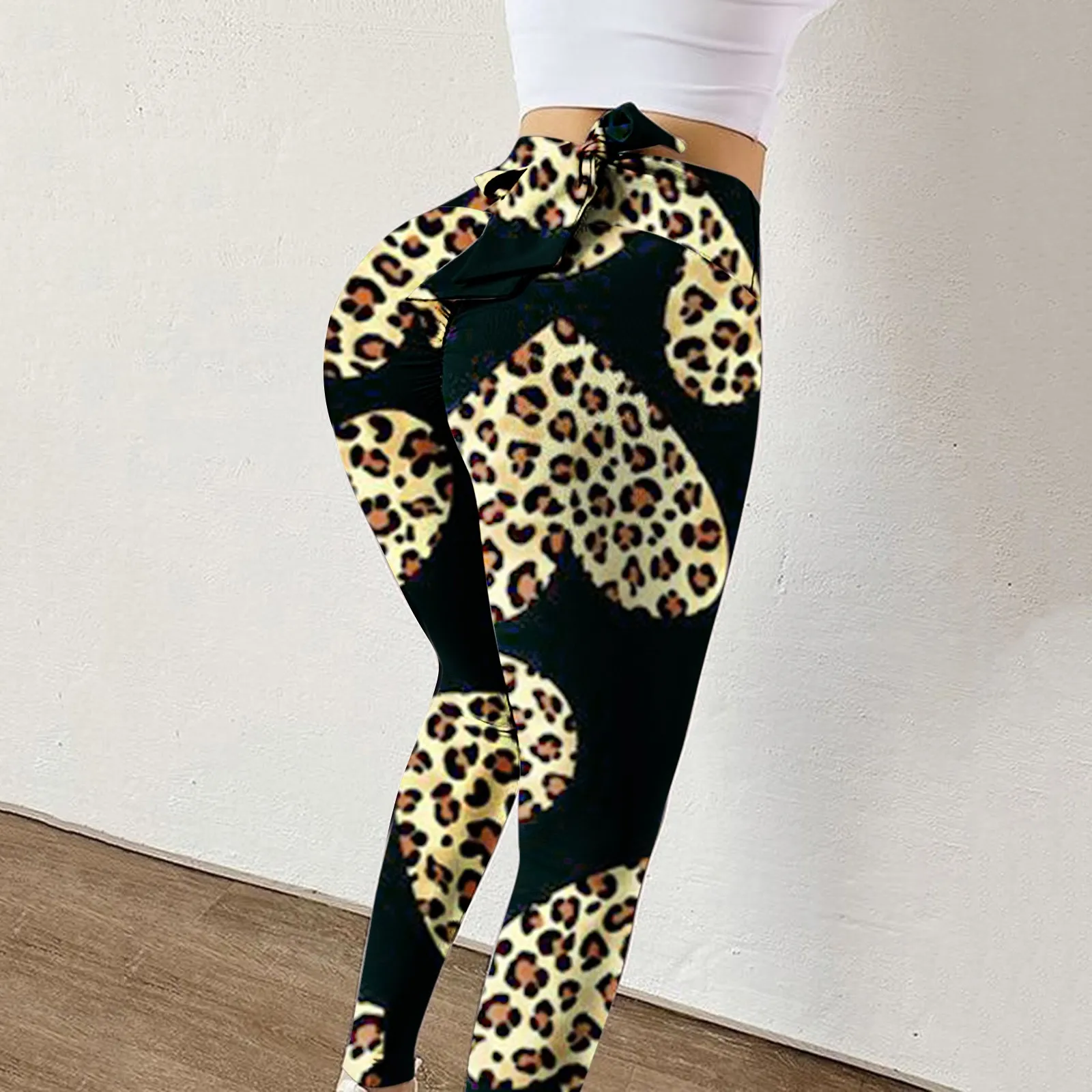 Леопардовые бесшовные легинсы с бантом, Женские легинсы с принтом п...