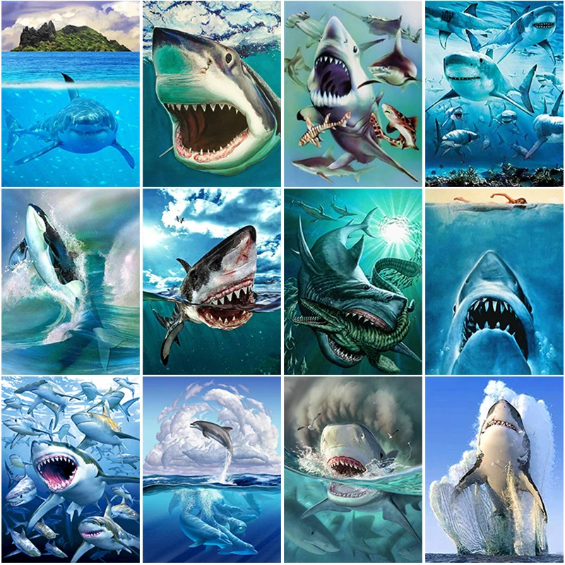 DIY 5D картина с изображением акулы с алмазным полным сверлом Стразы Вышивка бисерные картинки Набор для вышивки крестом настенное Искусство ручной работы Декор