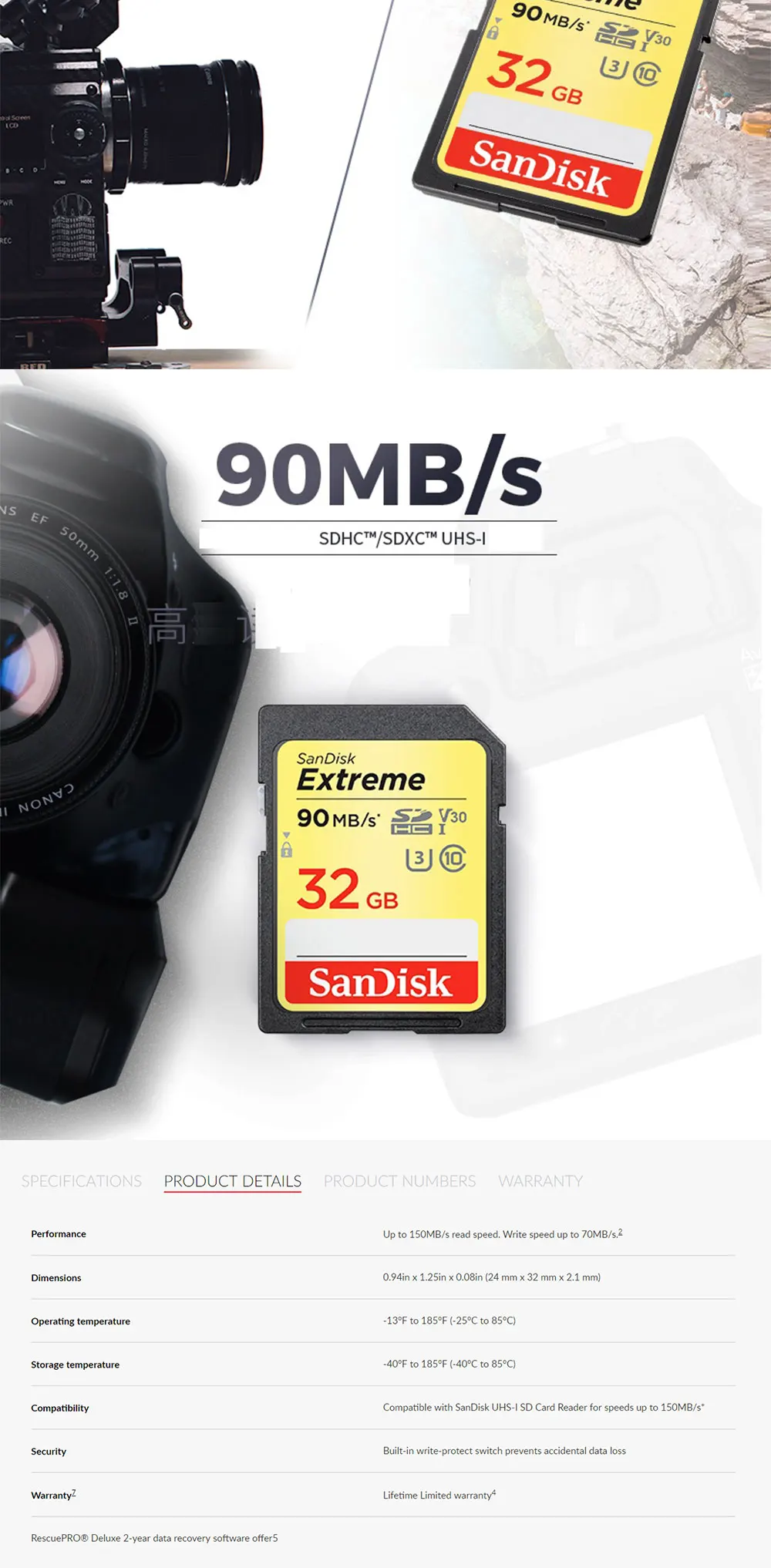 Карта памяти SanDisk Extreme SD, SDXCSDHC SD, класс 10, 64 ГБ, 128 ГБ, 256 ГБ, 32 ГБ, 16 ГБ, SDXC, SDHC для камеры