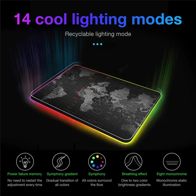 Большой игровой коврик для мыши RGB с картой мира, цветной компьютерный коврик, Настольный коврик, коврик для клавиатуры для ноутбука