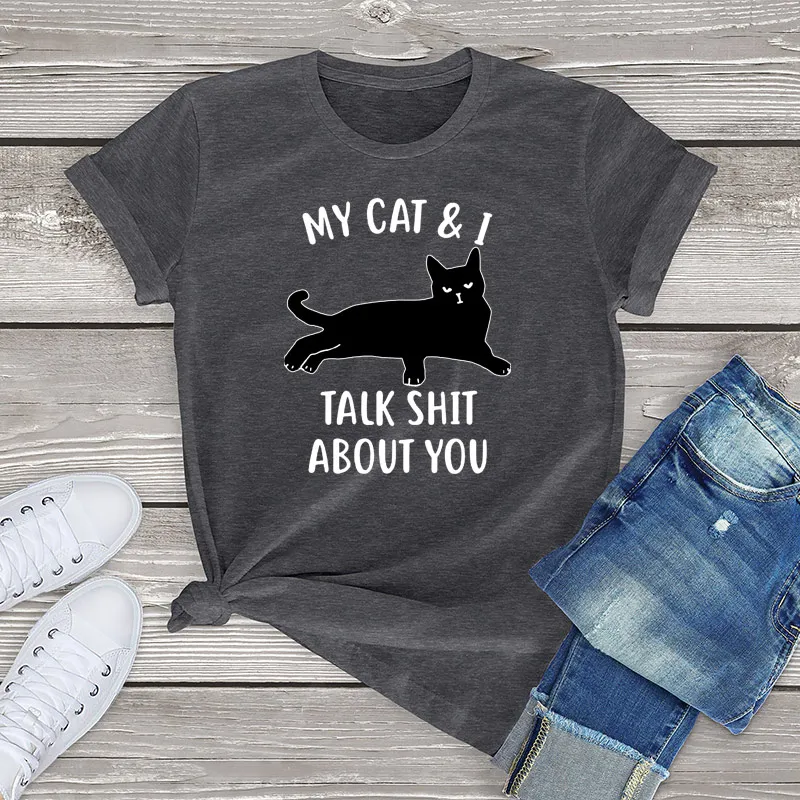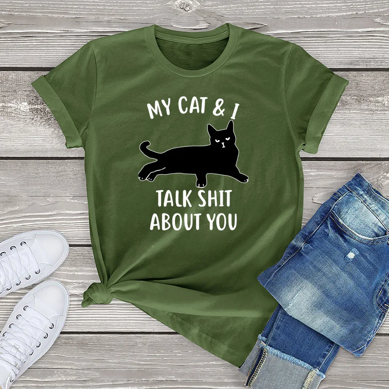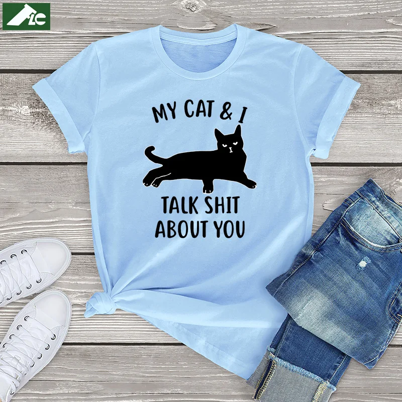 100% хлопок, кавайная футболка с забавным котом, женская одежда, футболка с принтом «мой кот и я разговариваем о тебе», винтажная Мужская футболка с коротким рукавом, унисекс