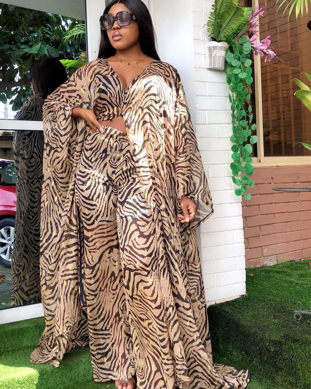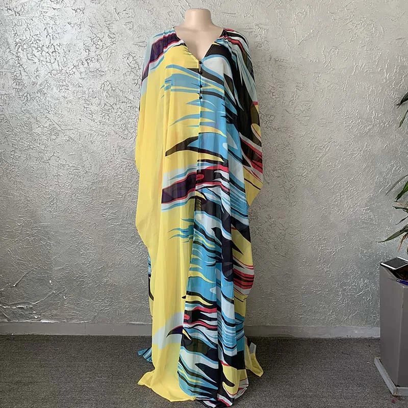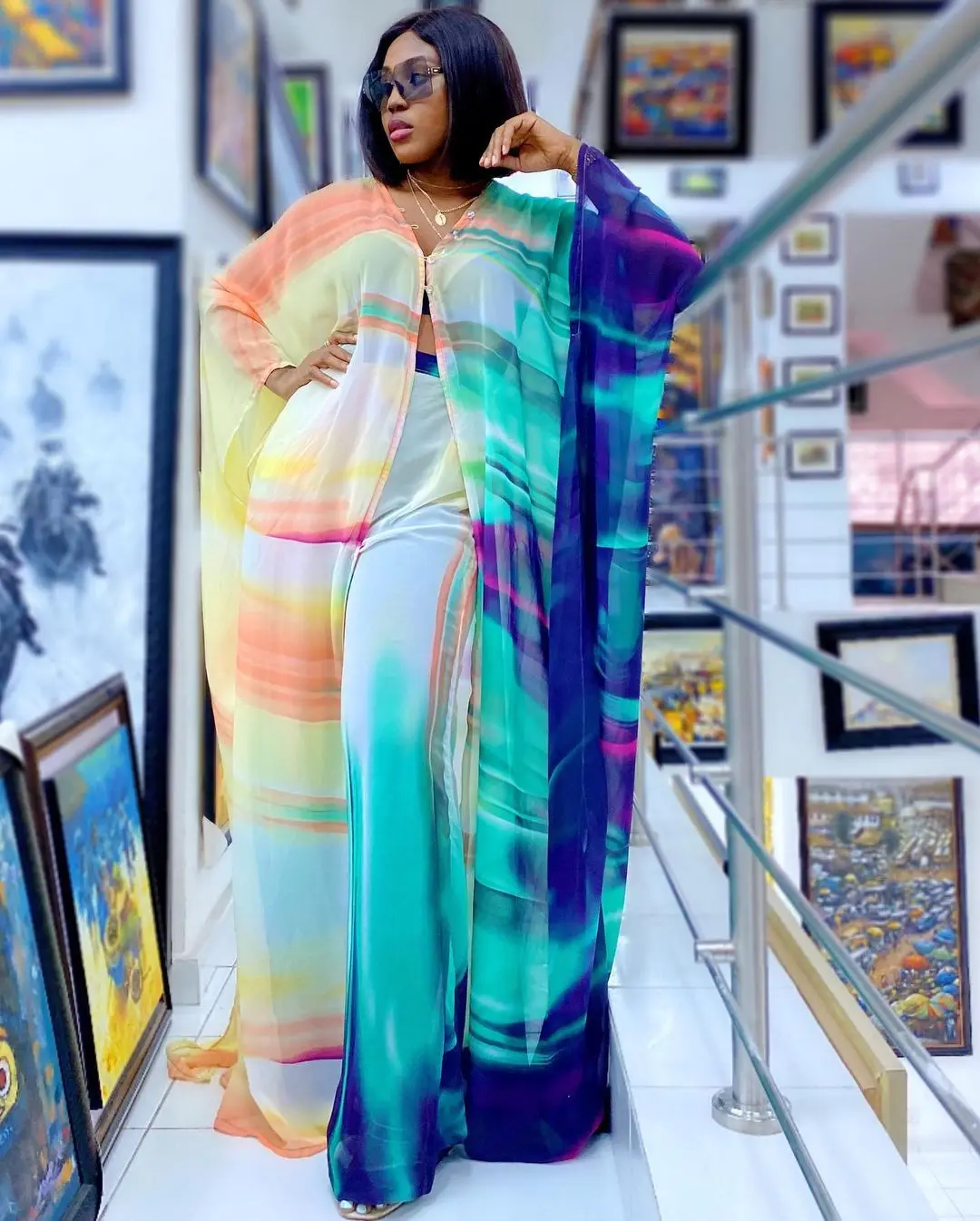 Топ 2021, Модный комплект из 2 предметов, африканские платья для женщин, комплект из двух предметов, шифоновая длинная абайя с принтом и свободные брюки, костюм, платья