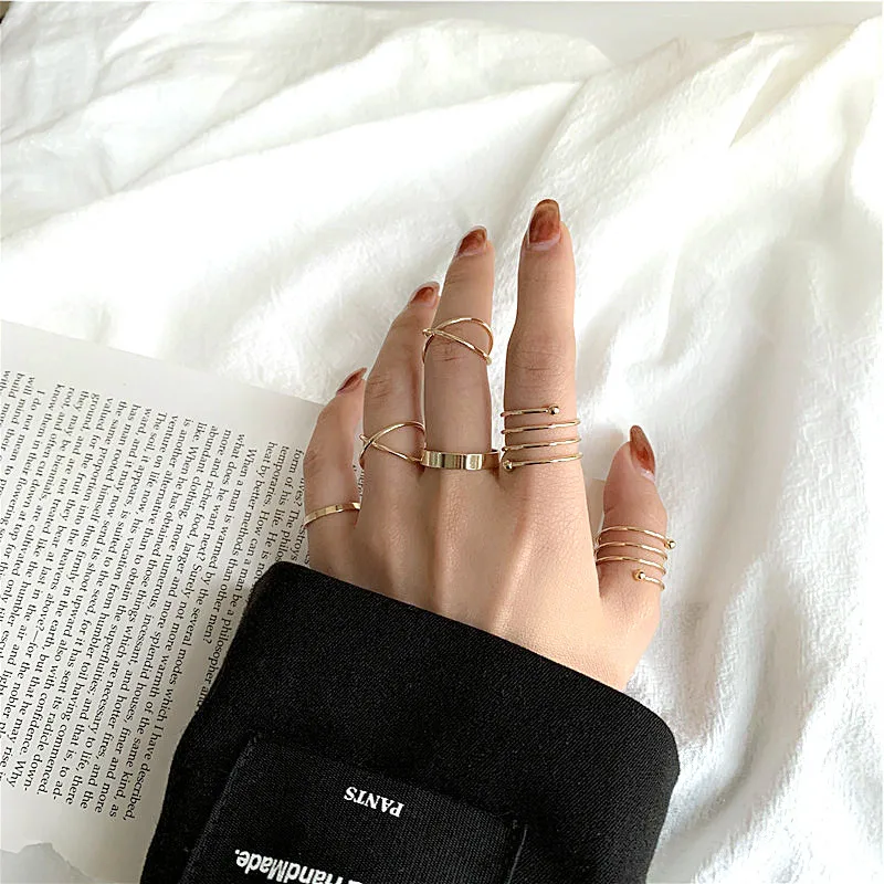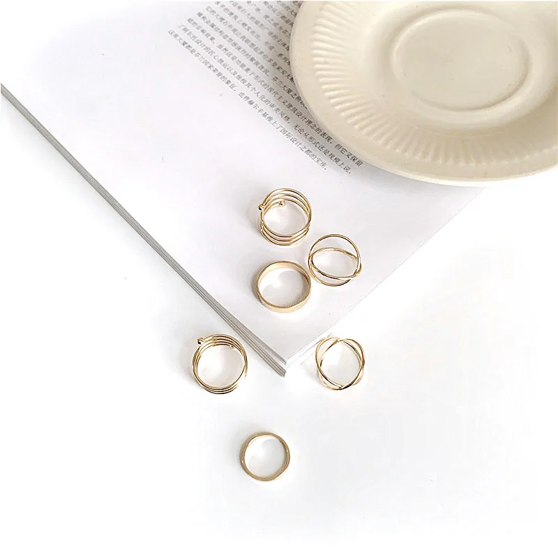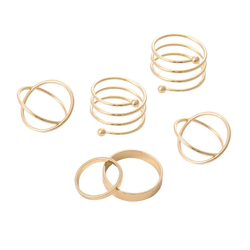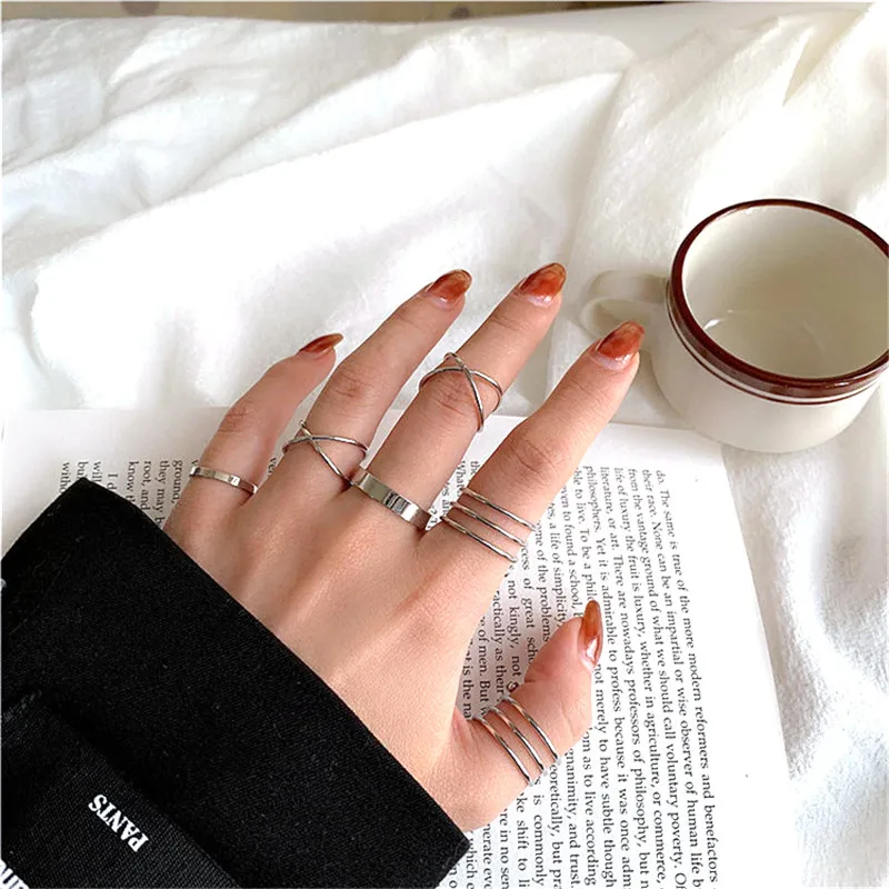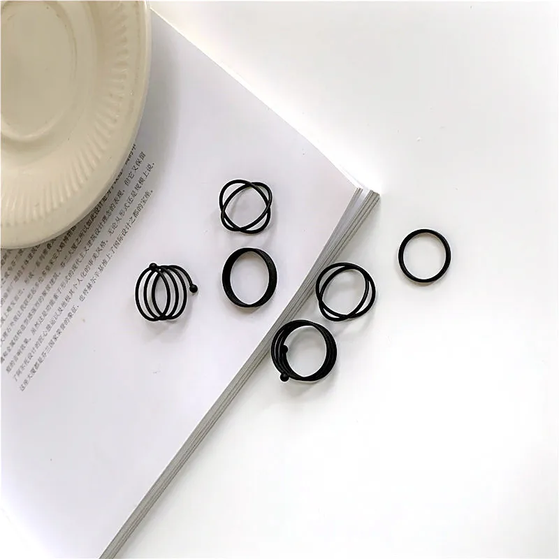 Комплект женских колец из 6 предметов, минималистичные металлические полые круглые кольца с крестом, корейские модные черные матовые ювелирные украшения для женщин