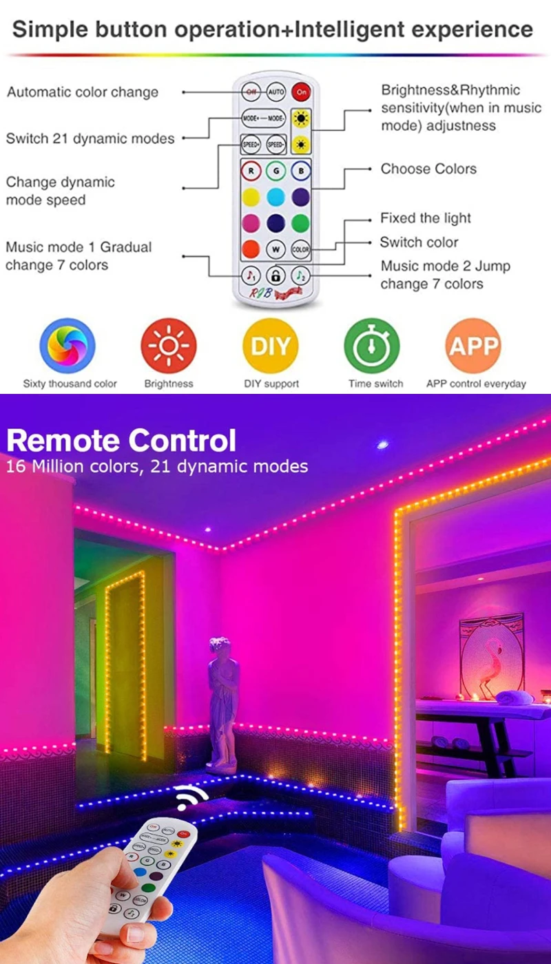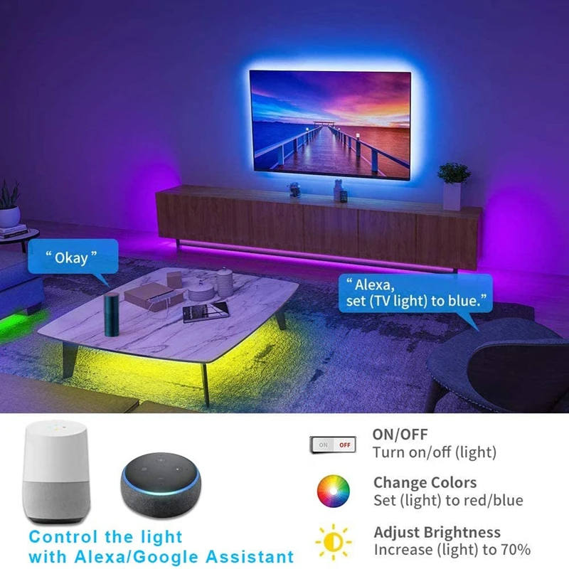 Светодиодная лента Tuya, светильник RGB 5050, гибкая лента 12 В, декор для спальни, Luzes, Bluetooth, Smart, WIFI, управление, работа с Alexa Google