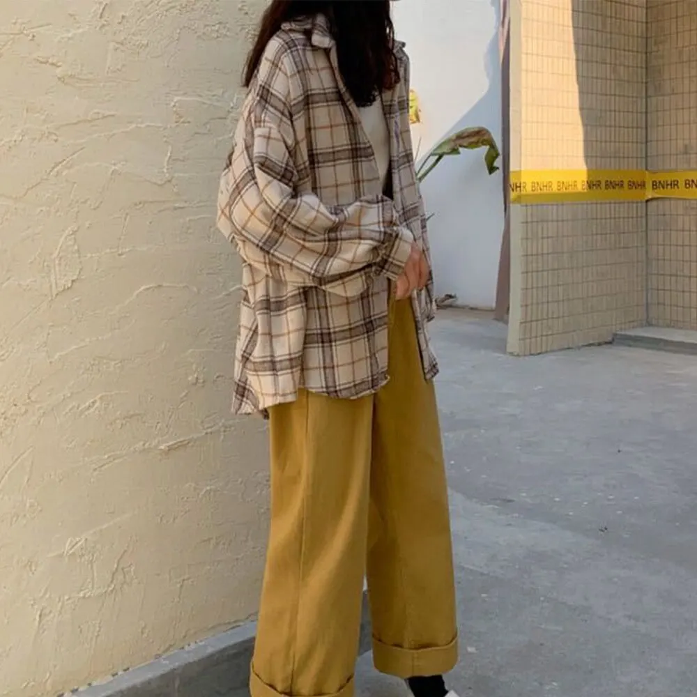 Simple Casual Plaid Loose shirtskorean style blouses shirts