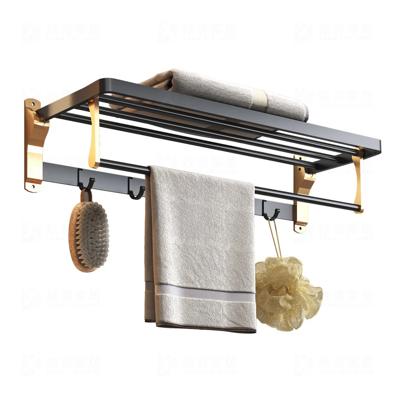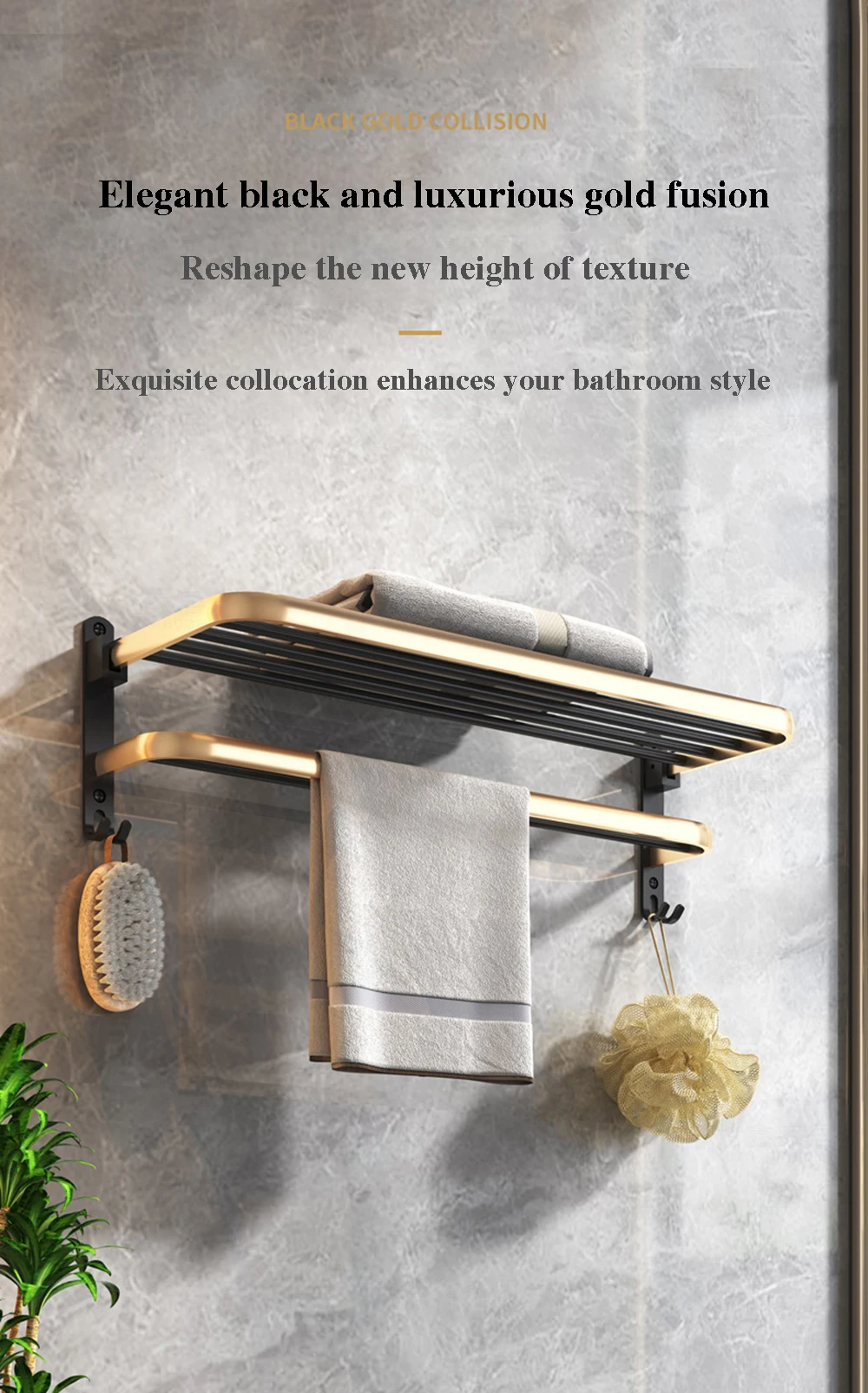 Алюминиевая вешалка для полотенец в ванную комнату, держатель для полотенец, полка для душевой комнаты, настенный светильник роскошного черного и золотого цвета, фурнитура, подвесные инструменты