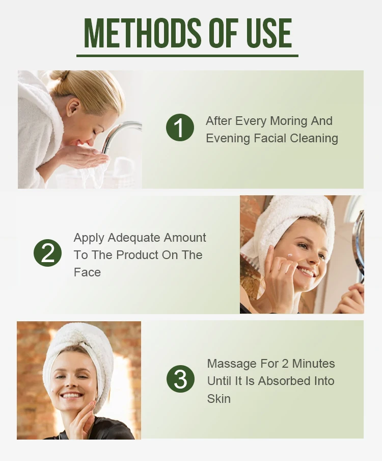 1. После очищения Чайным Деревом освежающее очищающее средство для лица каждое утро и ночь и с помощью освежающего тонера чайного дерева нанесите соответствующее количество крема на лицо и шею равномерно;2. Мягко массируйте до полного впитывания.