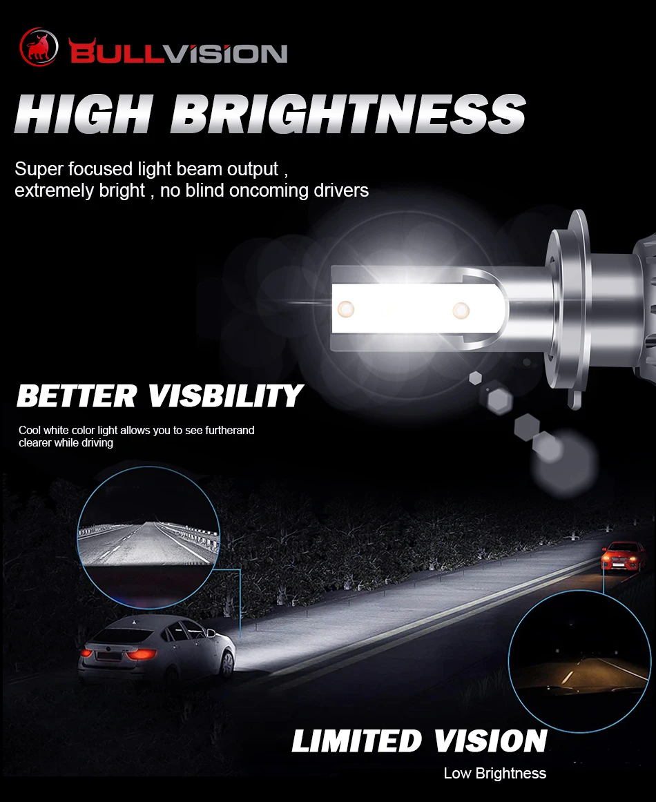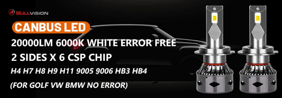 (1) светодиодная фара 20000LM/пара, каждая лампа 10000lm, супер яркая.(2) один светильник имеет 2 стороны 3 шт CSP чипы.(3) Этот продукт 6000k, чисто белый светильник.(4) Мощность этого продукта составляет 90 Вт/пара, каждая лампа-45 Вт.