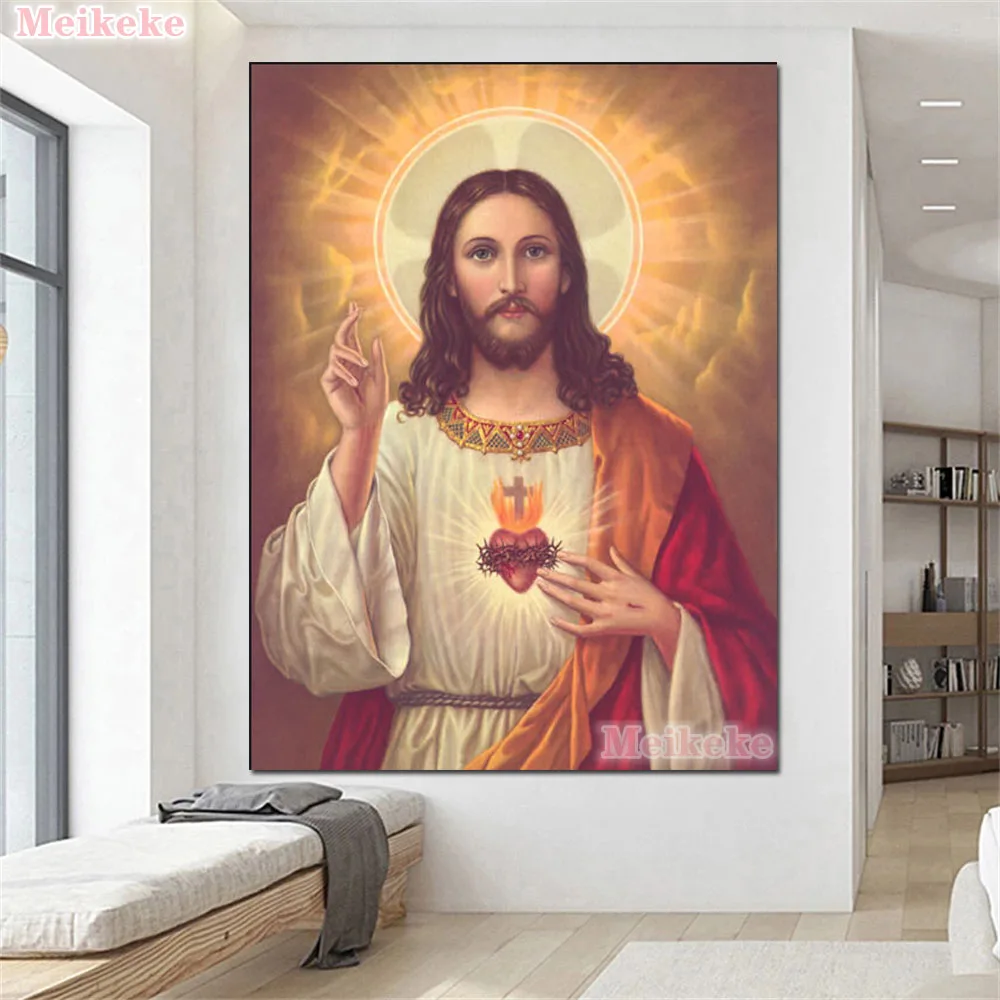 Алмазная 5D картина сделай сам с полным заполнением, мозаика из страз религиозное Священное Сердце Иисуса, вышивка крестиком, домашний декор