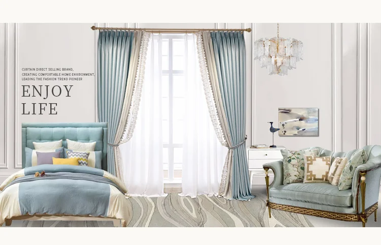 Французские высококачественные тисненые жаккардовые кружевные шторы...