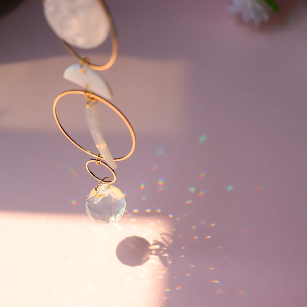 Металлический подвесной Радужный хрустальный шар, полукруглая луна, нефритовые кольца, подвеска, красочный Ловец Солнца, сделай сам, уличное украшение для сада