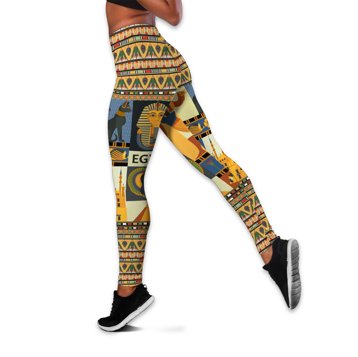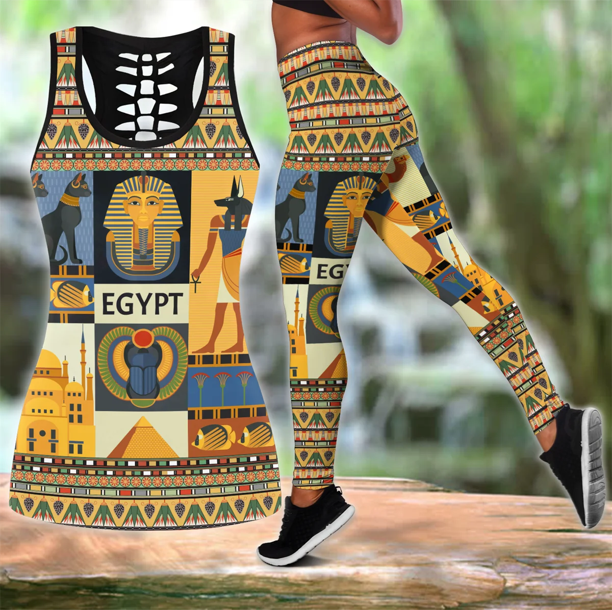 Комплект из топа и леггинсов с 3D принтом в древней египетской мифологии полый резервуар, женские длинные леггинсы для фитнеса, штаны для йоги LKB-17