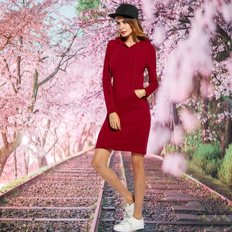 Женское весенне-осеннее платье с капюшоном размера плюс, свободное Повседневное платье-Толстовка, многоцветное универсальное платье с длинным рукавом