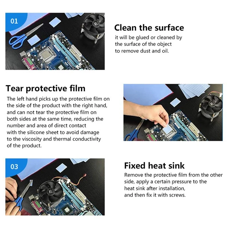 Тепловой силиконовый коврик мягкий, и он может заполнять поверхности пространства, что эффективная теплопередача нагревательных частей к радиатору.Термосиликагелевая прокладка имеет хорошее охлаждение, изоляцию, теплопроводность, износостойкость, Непроводимость, антистатик, огнестойкость, термостойкость, высокая термостойкость, Сжимаемость, амортизацию и т. д.Термальность Силиконовая накладка имеет Термальность проводимость 1,5 Вт/м-k, который может эффективно передачи тепла нагревающихся компонентов к теплоотвод.Этот лист рассеивания тепла липкий и простой в использовании, нам просто нужно установить между нагревателем и теплоотводящим компонентом для достижения теплопередачи и изоляции.Удобный в использовании, очень удобный в использовании, высокая теплопроводность, которая применима к карточкам с Севером-Югом мостом, бытовым приборам, высокоскоростному жесткому диску, мини радиатору тепловых труб, мощному источнику питания, светодиодный светильник.Тип изделия: Теплопроводящая прокладкаРазмеры: 100x100x1,5 мм/3,94x3,94 x 0.06inТолщина Допуск по уровню поверхности: 0,2 +-0,01Непрерывное использование температуры:-50 ~ 200 градусов ЦельсияМассовое сопротивление: 10 ^ 12Напряжение пробоя: 4.5квТвердость: 30 +/- 5 Shore AПропорция: 2,05Прочность на растяжение: 15 кг/см ㎡Расширение: 48%Огнестойкий класс: 90V-0-1Пользователи:1. Очистите поверхность, она будет приклеена или очищена поверхностью объекта, чтобы удалить пыль и масло.2. Слезоточивая защитная пленкаЛевая рука берет защитную пленку на боковой стороне изделия правой рукой и не может одновременно оторвать защитную пленку с обеих сторон, уменьшение количества и площади прямого контакта с силиконовым листом во избежание повреждения вязкости и теплопроводности продукта.3. Фиксированный теплоотводСнимите защитную пленку с другой стороны, нанесите определенное давление на радиатор после установки, а затем закрепите ее винтами.Цвет: синийМатериал: резинаПосылка:5 * прокладка теплопроводностиТолько вышеуказанная посылка, другие товары не включены.Примечание: светильник и различные дисплеи могут привести к тому, что цвет товара на картинке немного отличается от реального. Допускается погрешность в измерениях +/- 1-3 см.
