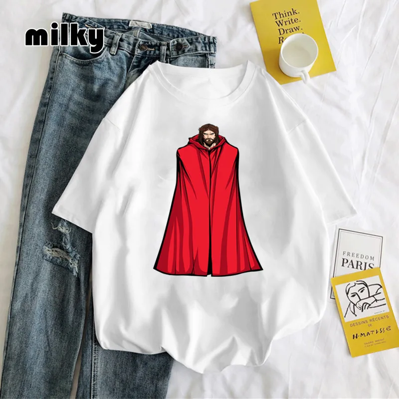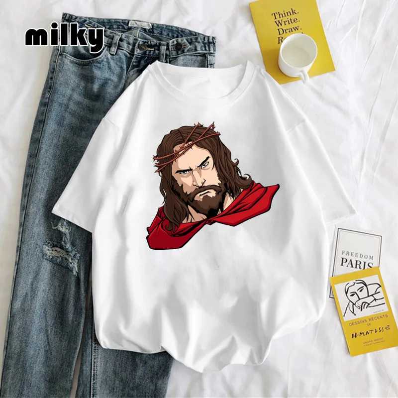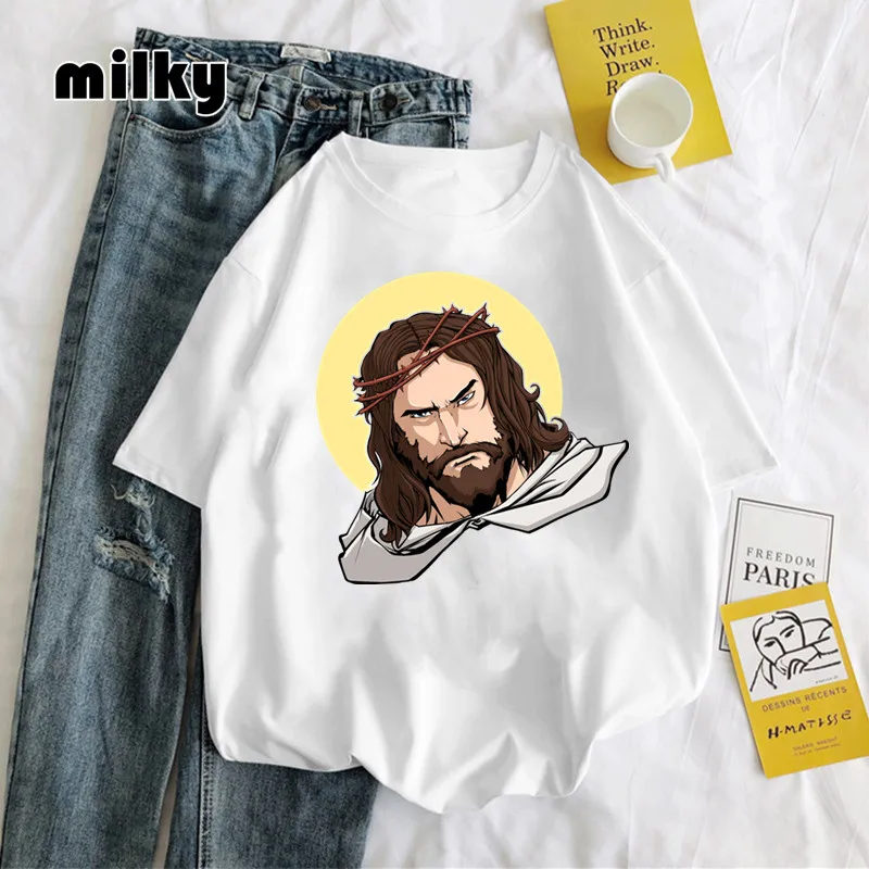 Женская футболка с забавным портретом Иисуса, Женская хипстерская футболка с графическим принтом, модная футболка 2021, топы, футболка, Прямая поставка, повседневная женская футболка