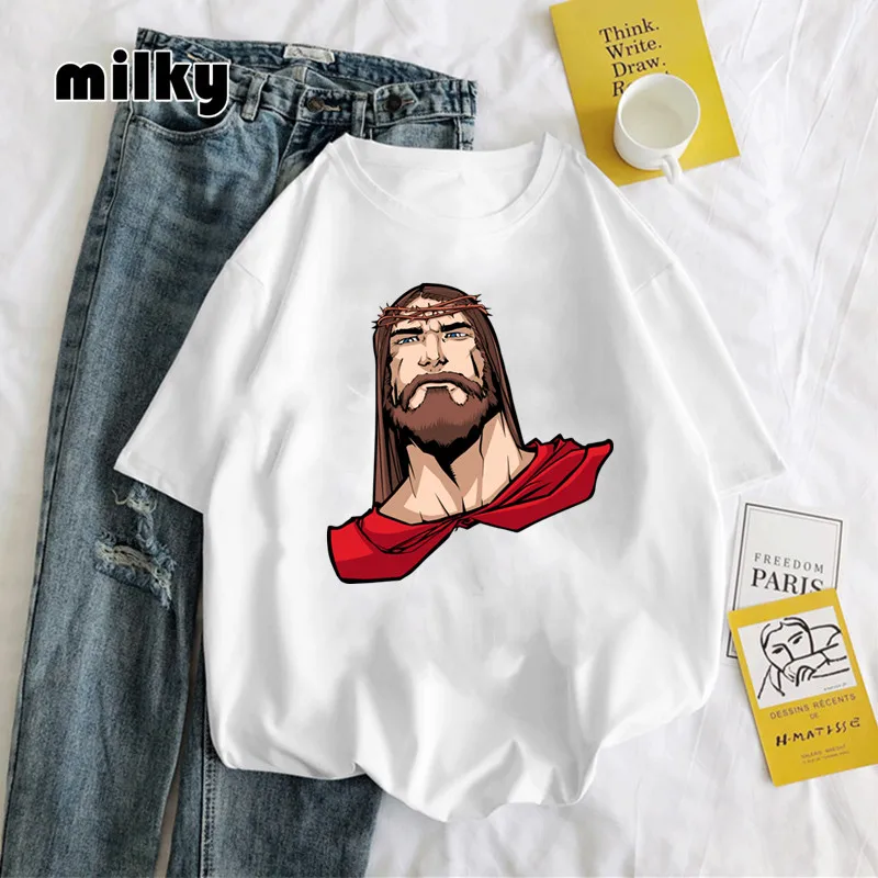Funny jesus portrait t-shirt womenhipster 2021 Fashion Oversized T-shirt Summer