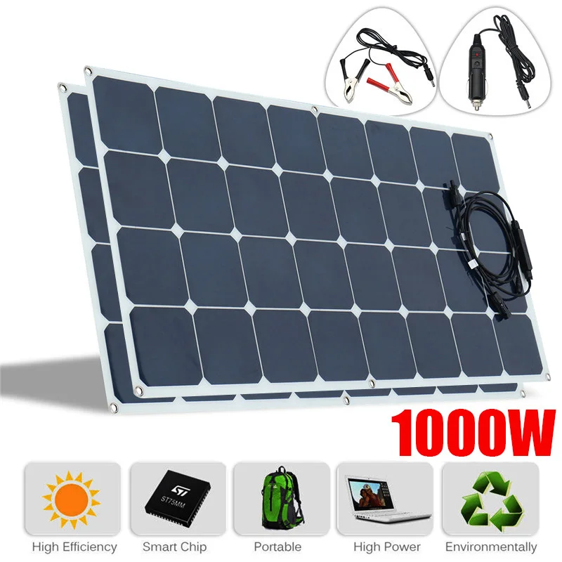 Солнечная панель 1000 Вт, портативная, водонепроницаемая, для зарядки телефона, улицы, автомобиля, Автодома, яхты, лодки