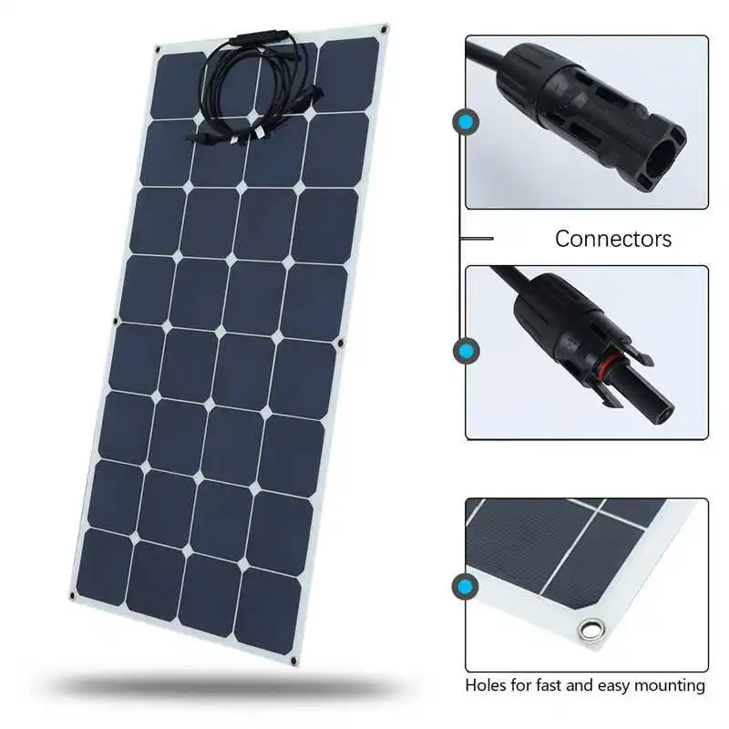 Особенности1. Высокая Эффективность ячеек из качественных силиконовых материалов для долгосрочной стабильности и надежности на выходе.2. Строгий контроль качества обеспечивает стабильность и надежность, всего 23 процедуры тестирования для контроля качества3. Закаленное железо с высоким коэффициентом пропускания и повышенной жесткостью и ударопрочностью4. Поводки солнечной панели для легкого подключения и использования в играх!Характеристики:Название продукта: солнечная панель Sunpower 500 ВтДопуск: +/-5%Напряжение батареи SLA: 12 ВТип солнечных элементов: монокристаллическийНапряжение холостого хода (Voc): 21 вТок короткого замыкания (КЗ): 6АМаксимальное напряжение системы: 20 вКоэффициент температуры Isc: (010 +/-0,01) %/CУмеренный коэффициент ЛОС: - (0,38 +/-0,01) %/CУмеренный коэффициент мощности ЛОС: -0.47%/CДиапазон температур: от-40 Cto + 80 CПосылка 1:1 Солнечная панель 100 Вт1 зажим типа крокодил1 автомобильное зарядное устройство
