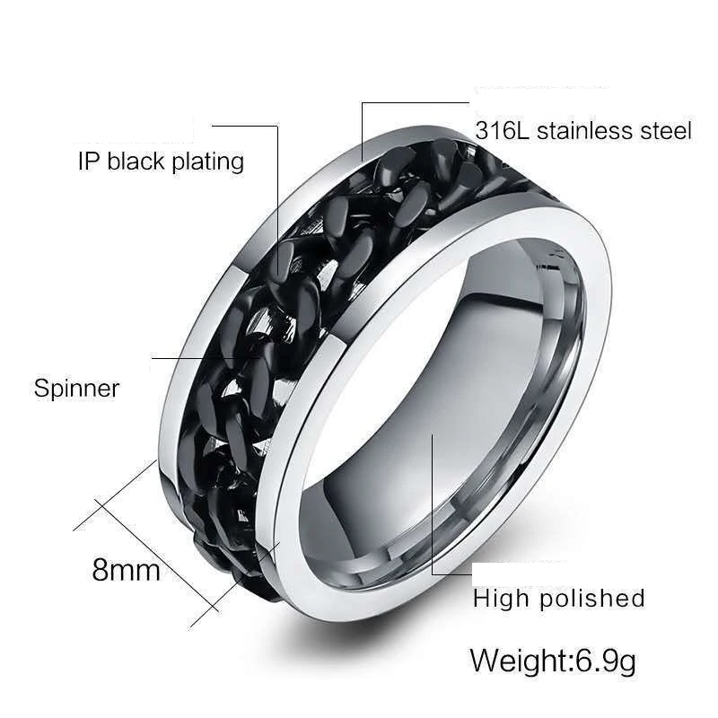 Кольцо-Спиннер для мужчин и женщин, вращающаяся цепь из нержавеющей...
