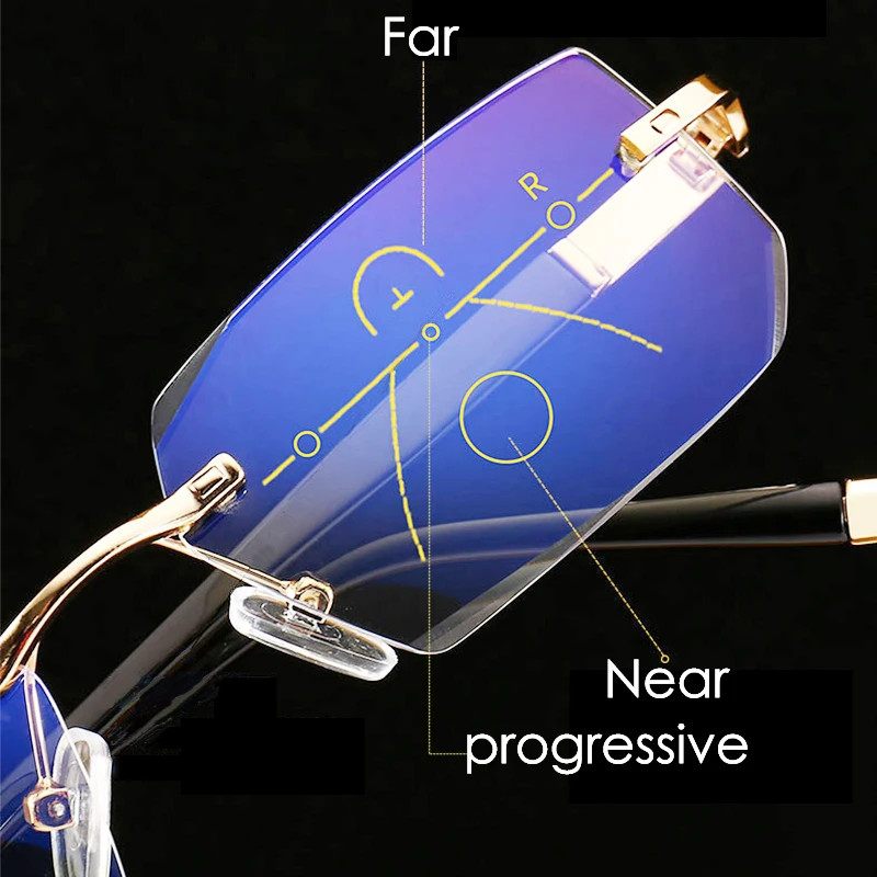 Прогрессивные многофокальные безободковые очки для чтения для мужчин и женщин, очки для дальнозоркости с защитой от сисветильник, компьютерные очки