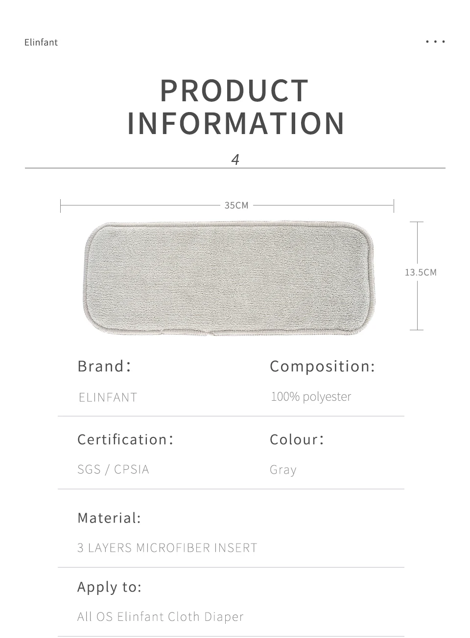 Подгузник Elinfant из микрофибры, 3 слоя, серый, 4810 шт.