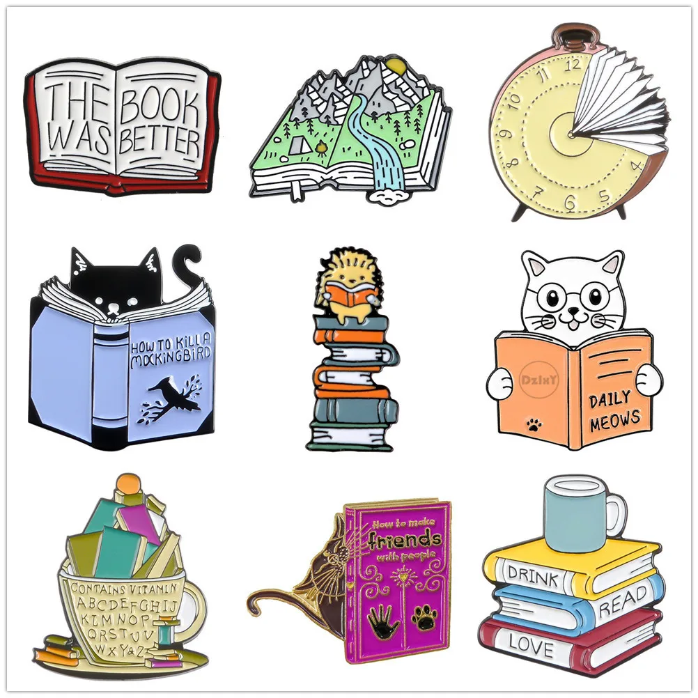 Броши на воротник с эмалью, в виде книг, для одежды